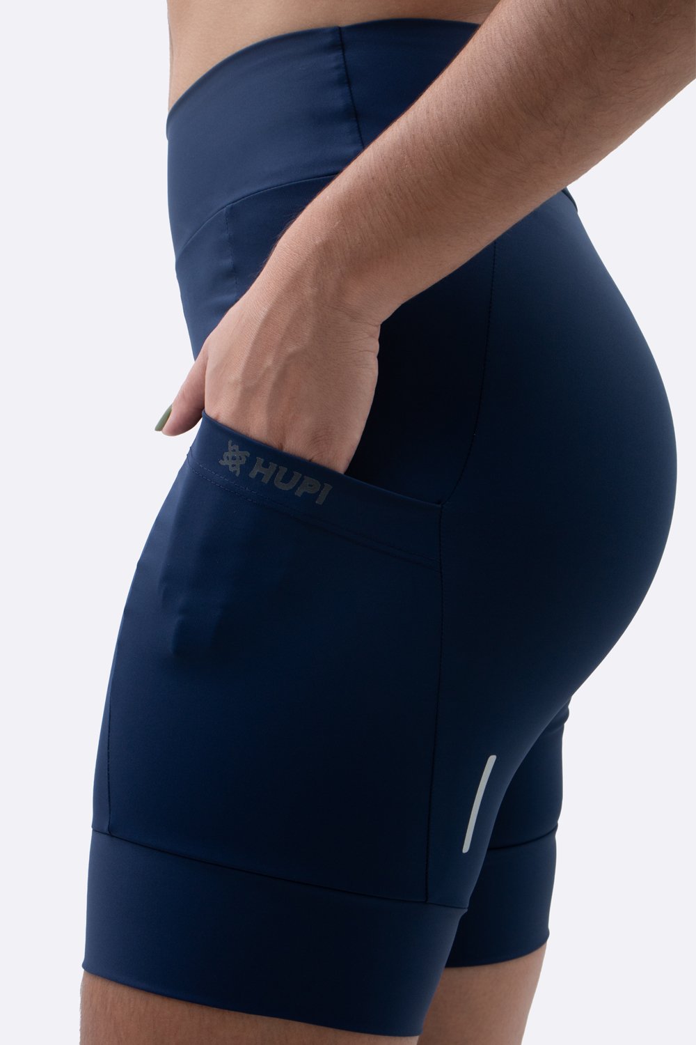 Tecnologias e Benefícios da Bermuda de Compressão Feminina HUPI Run Longa Azul Marinho