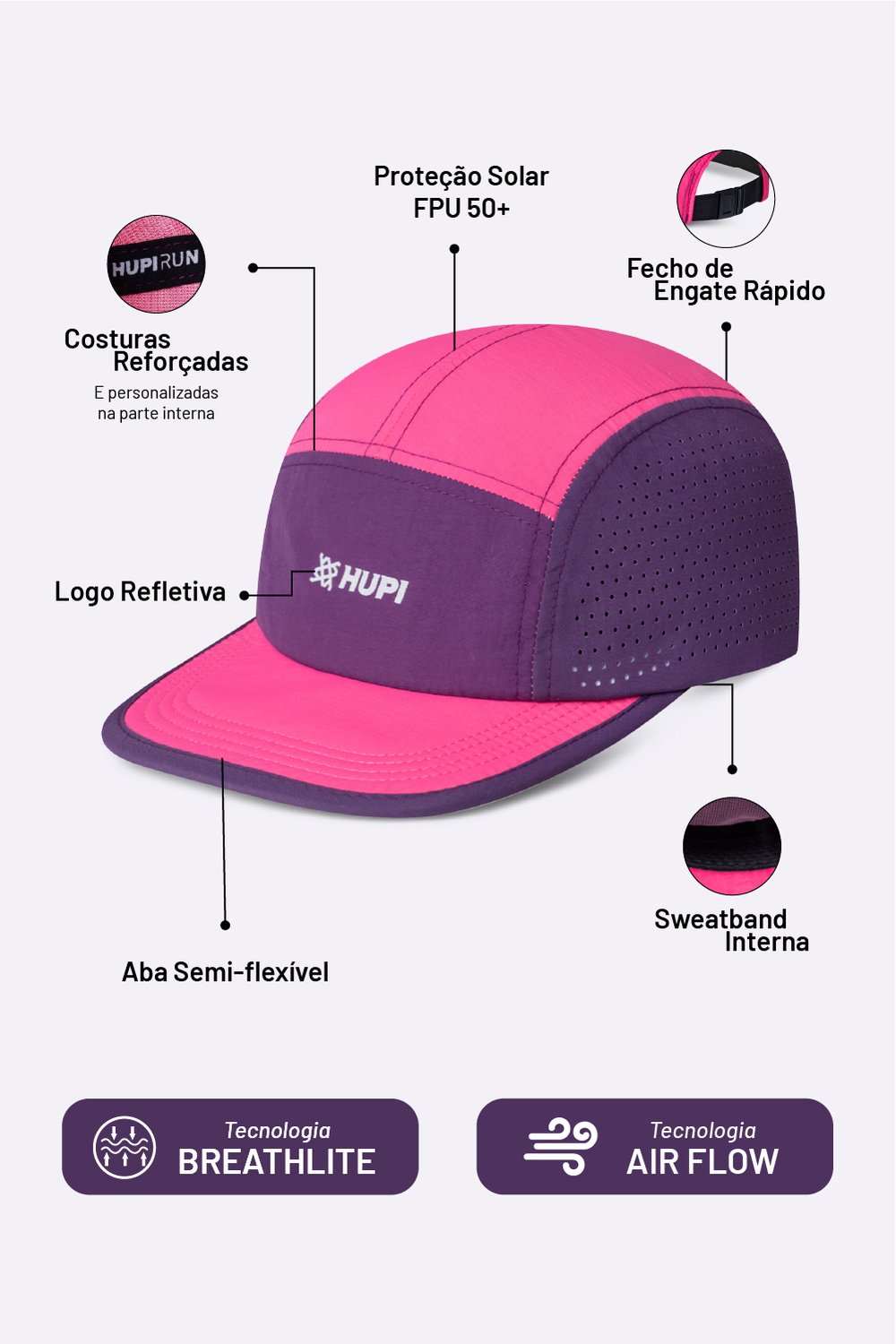 Especificações Técnicas do Boné HUPI Run Supreme Air