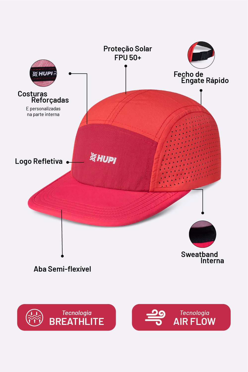 Especificações Técnicas do Boné HUPI Run Supreme Air Vermelho