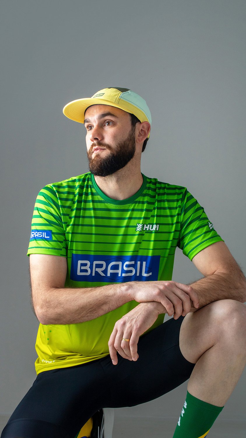 Além disso, pode ser usado no formato tradicional ou como boné de corrida aba reta, unindo performance e identidade em uma só peça.