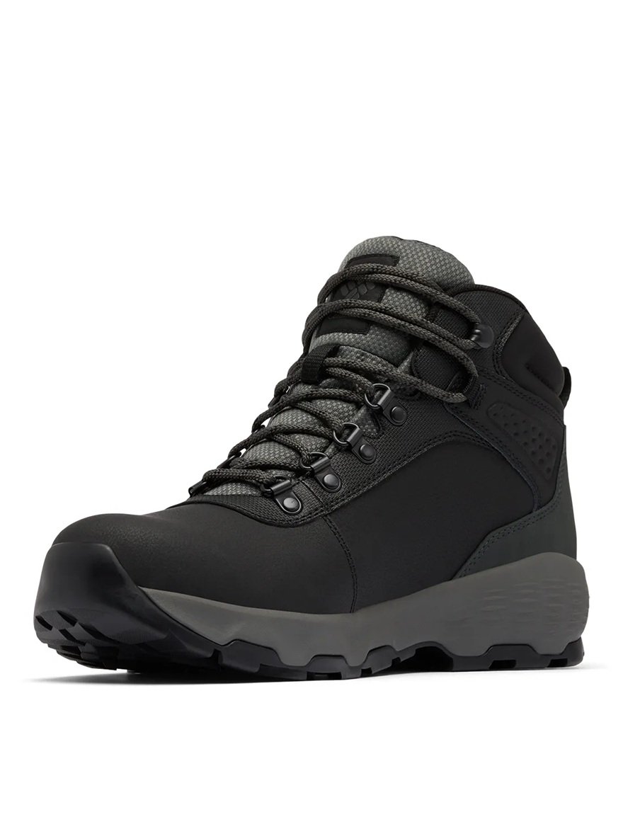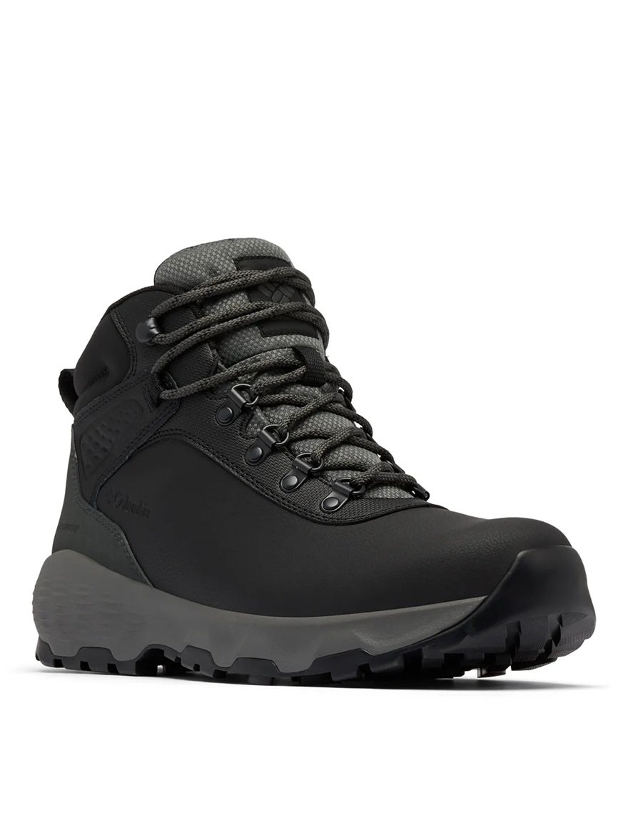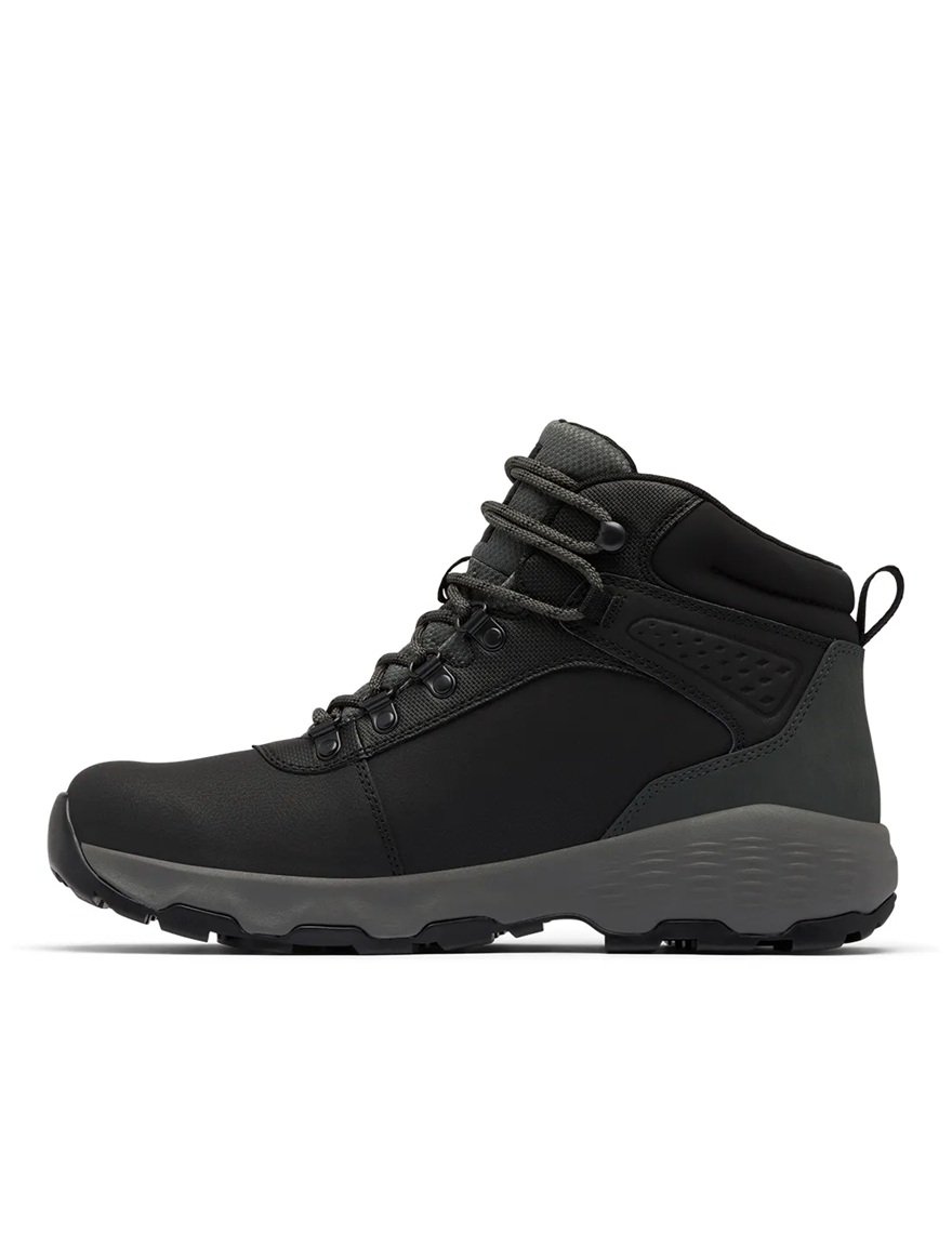 A Bota Columbia Masculina Newton Wander LTR Preta conta com cabedal em couro impermeável, oferecendo maior durabilidade e proteção contra água, ideal para ambientes úmidos e trilhas com variação climática.