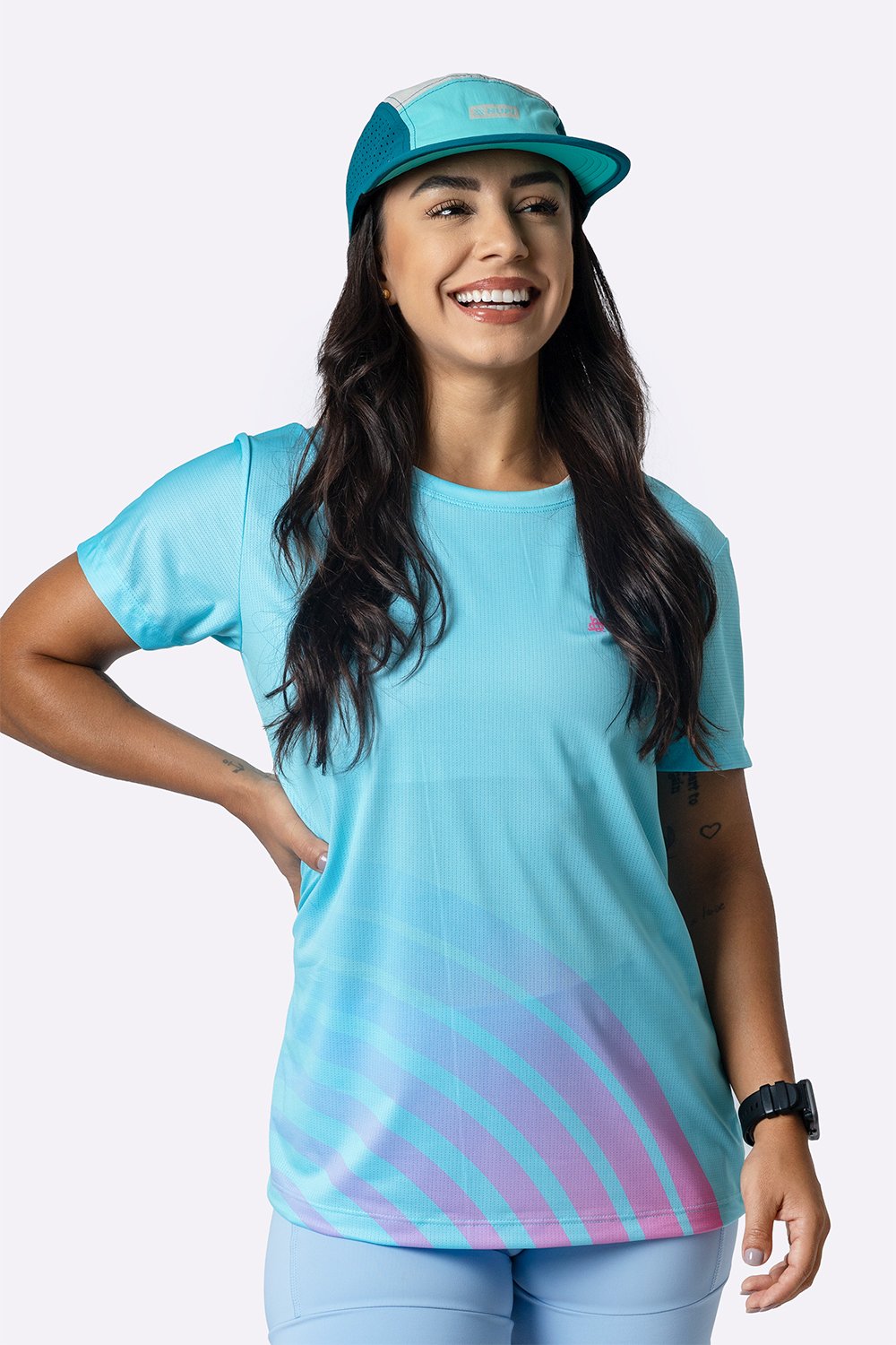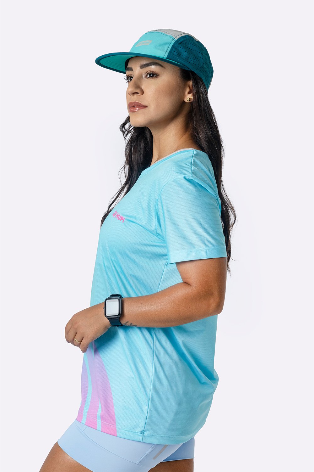 Com base em verde água e curvas em rosa aplicadas de forma sutil, a Camiseta Dry Fit Feminina HUPI Aura traz uma leitura esportiva mais fluida e feminina, sem excessos visuais. É uma peça pensada para corredoras e praticantes de esportes que valorizam tecnologia, conforto e um design clean para acompanhar diferentes momentos da rotina.