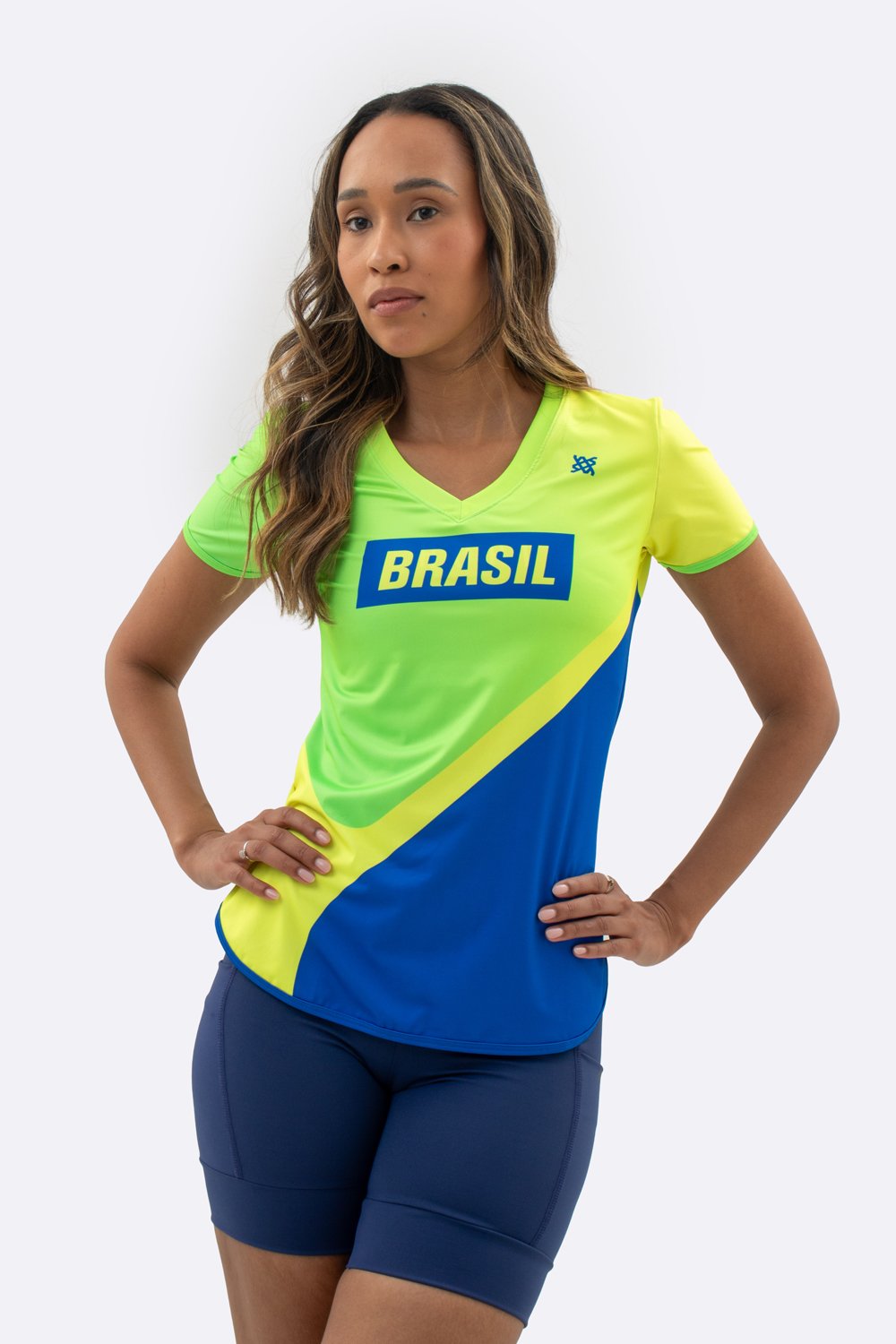 O tecido leve, a modelagem feminina e a tecnologia dry fit tornam a Brasa 3 uma escolha prática, funcional e muito confortável.