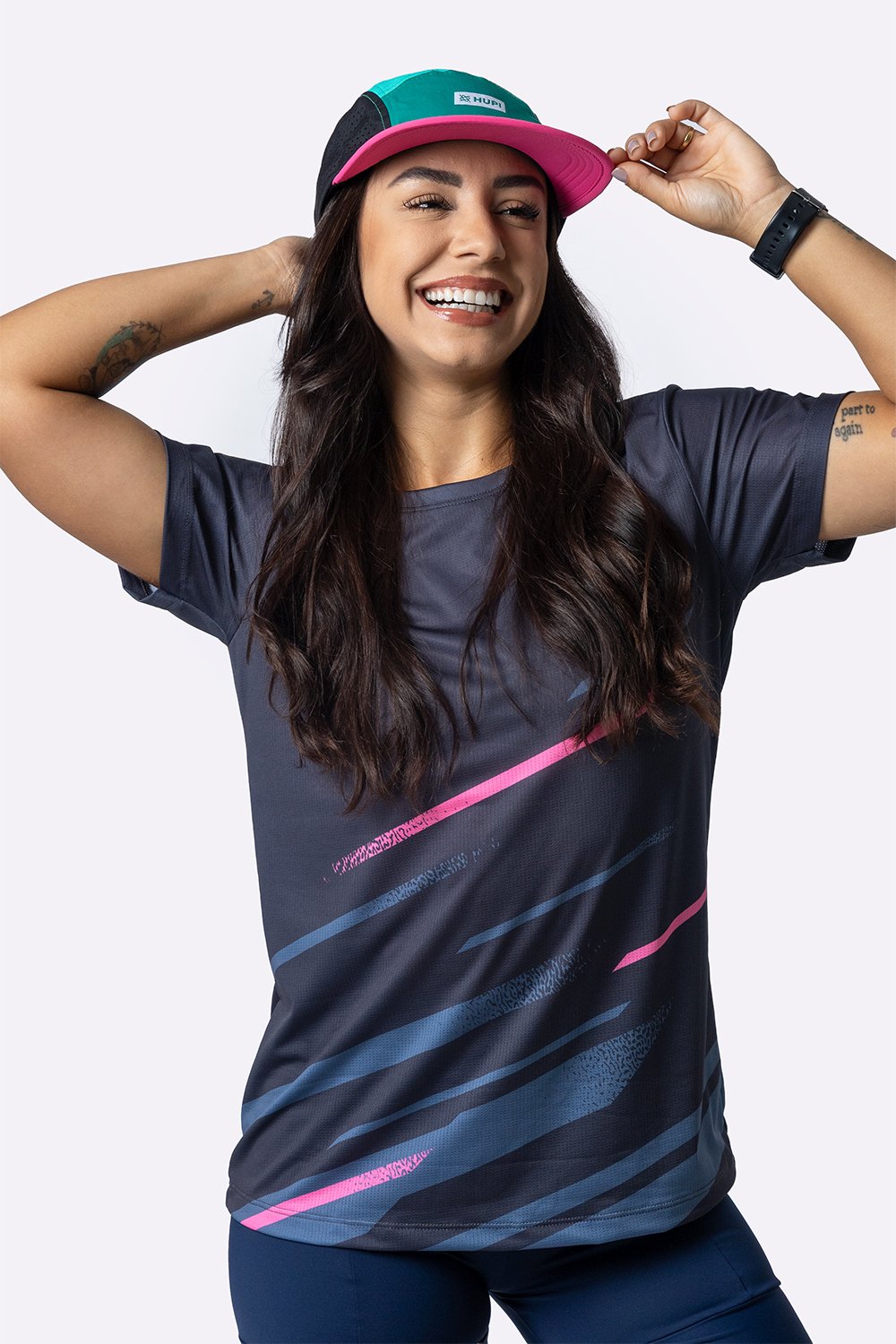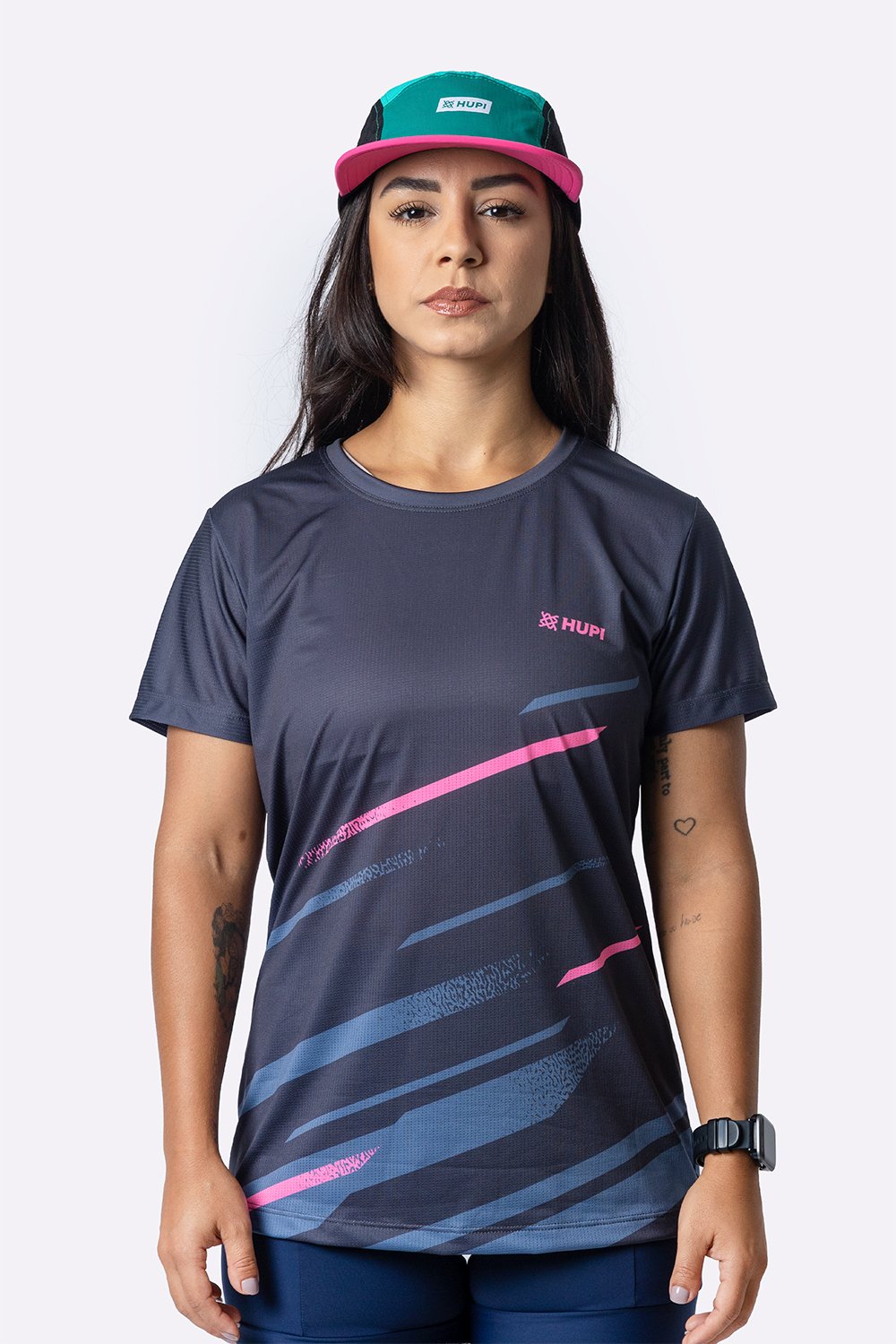 Além disso, a tecnologia HUPI Dry Flow reforça essa proposta ao unir toque suave, secagem rápida e ventilação eficiente em uma só peça. O resultado é uma camiseta esportiva feminina pensada para corredoras e praticantes de esportes que querem conforto, desempenho e uma estética esportiva marcante.