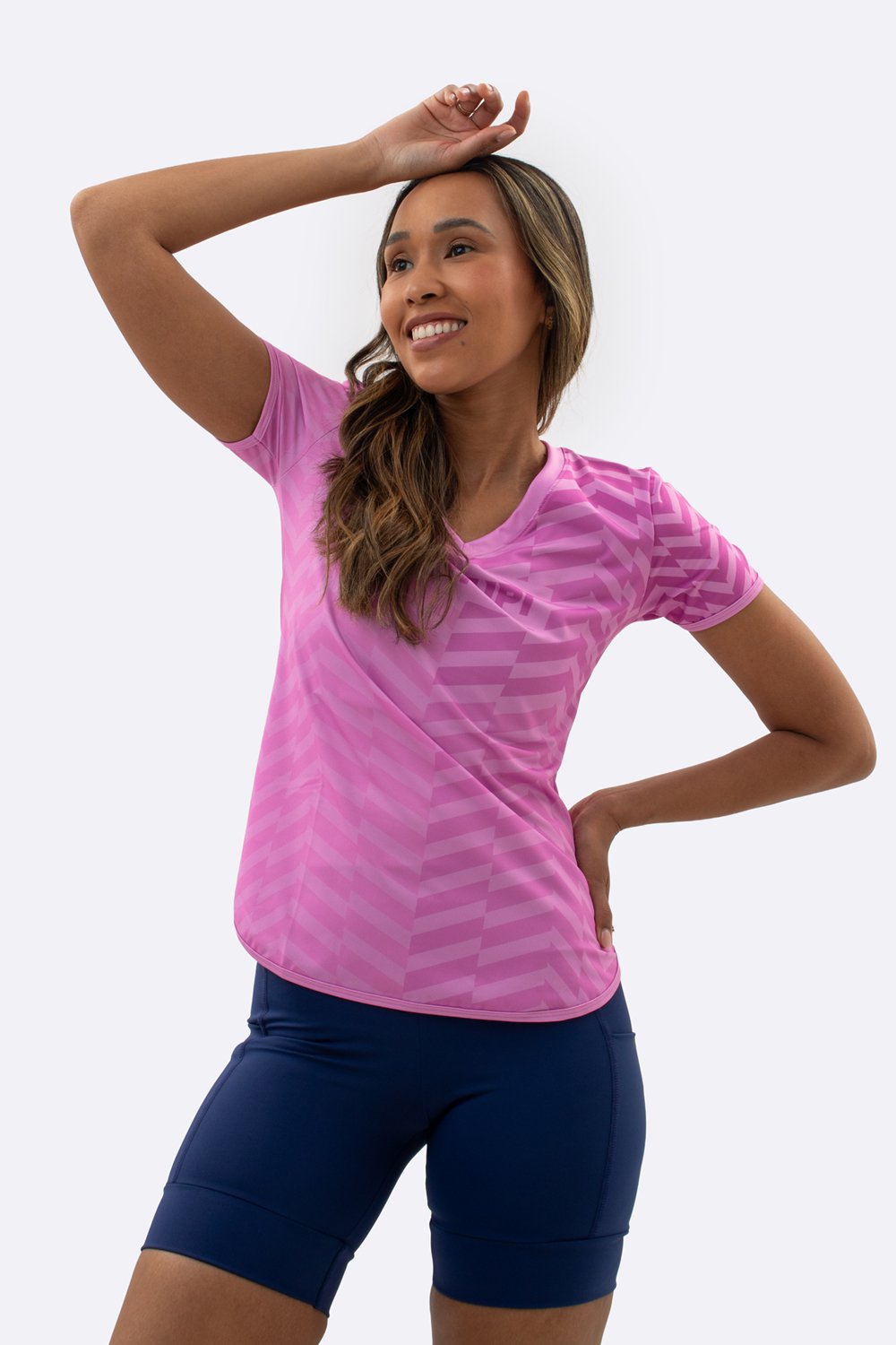 Camiseta dry fit Feminina com 96% poliéster e 4% elastano
