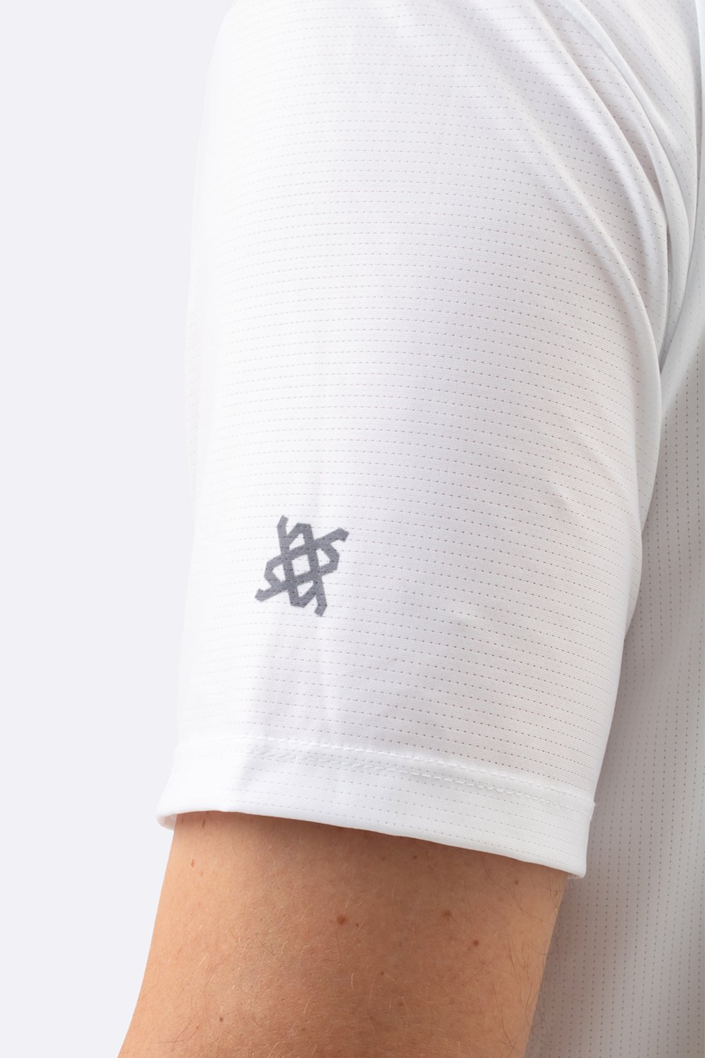 Sua construção prioriza eficiência no uso esportivo. O tecido dry fit leve e respirável facilita a dissipação do calor e o controle do suor, contribuindo para uma sensação mais agradável ao longo da atividade. O visual limpo da cor branca reforça a proposta funcional da peça, sem interferir na mobilidade ou no desempenho.
