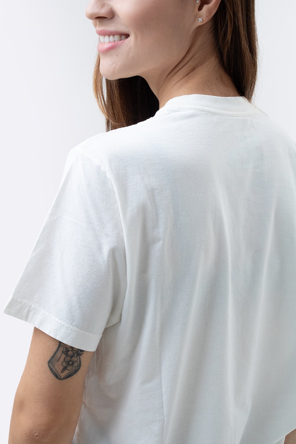 Com modelagem levemente quadrada e corte reto, a peça proporciona um caimento fluido, ideal para composições casuais e modernas.