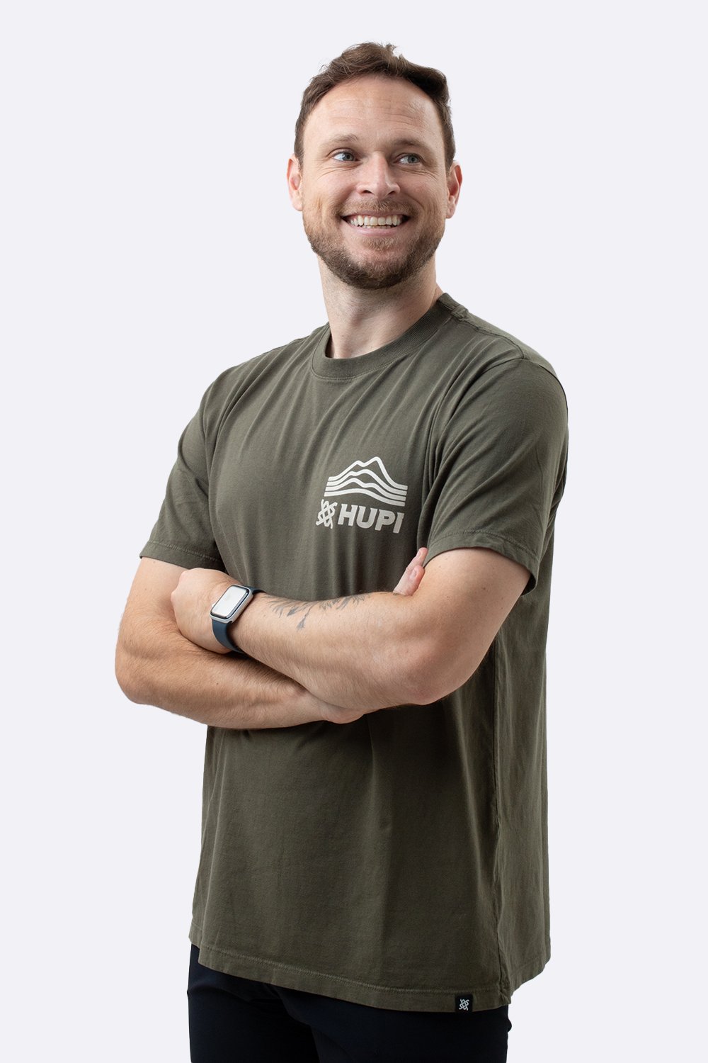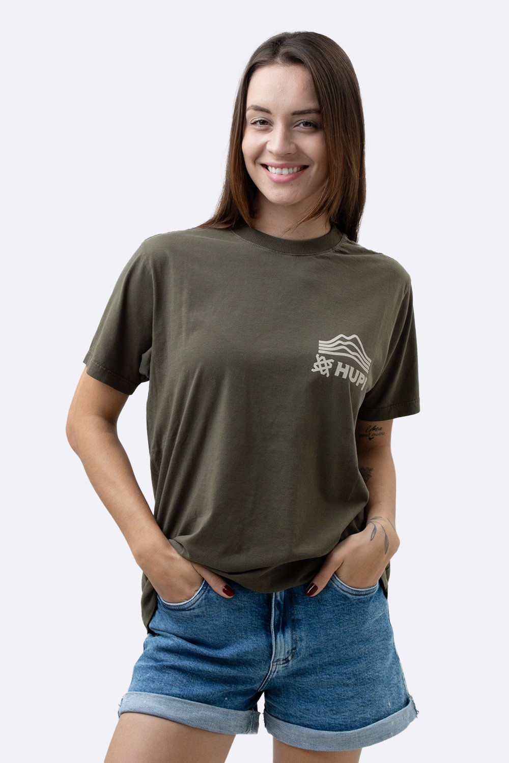 A Camiseta HUPI Casual Verde Mountain foi criada para quem carrega o espírito aventureiro dentro e fora das trilhas.