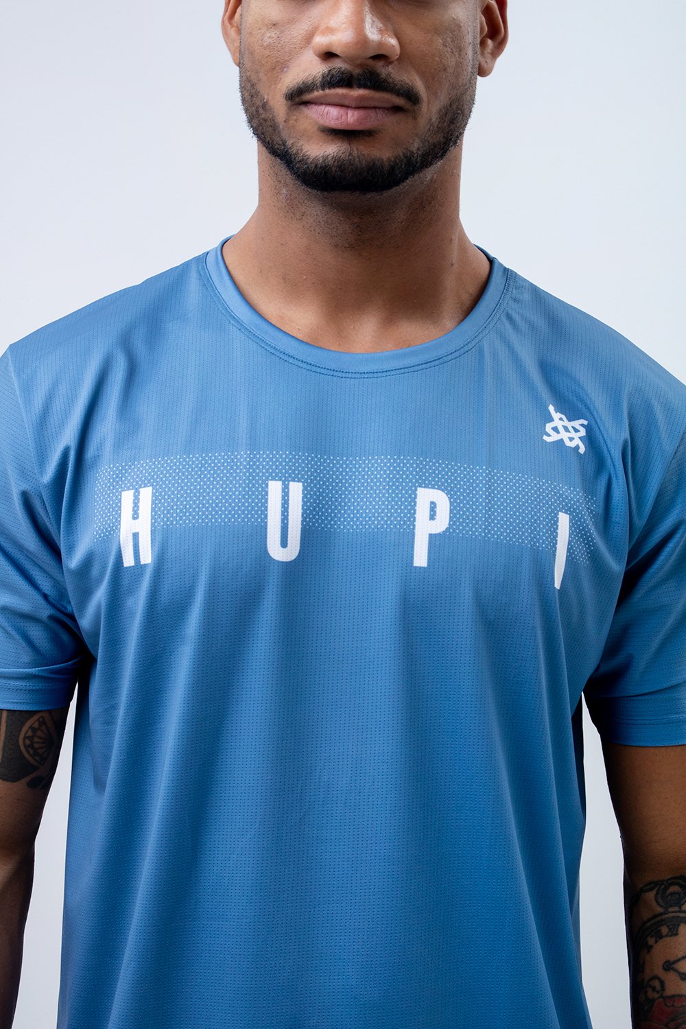 Estampa frontal HUPI: reforça a identidade esportiva da peça.