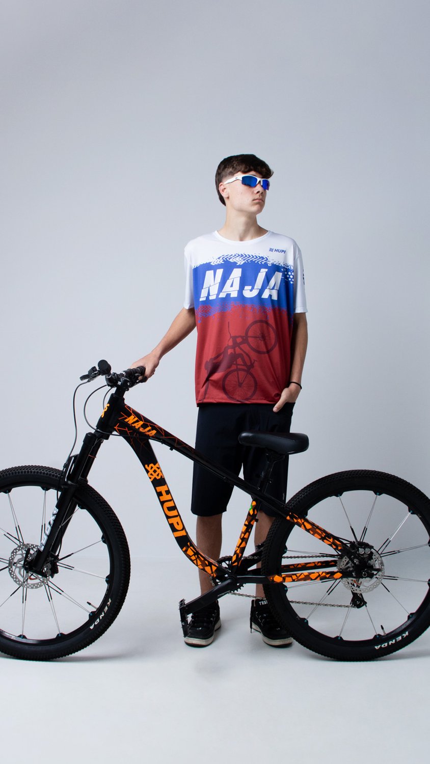 Se você curte andar com estilo e mostrar atitude em qualquer lugar, a Camiseta Masculina HUPI Bike Naja Branco/Azul é sua cara.