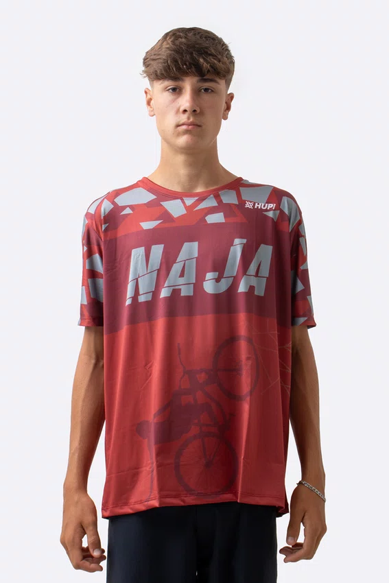 A Camiseta Masculina HUPI Bike Naja Vermelho/Cinza é feita em tecido Dry Fit com microfuros estrategicamente distribuídos, que ajudam a manter o corpo arejado e seco, mesmo em dias quentes ou durante atividades mais ativas.