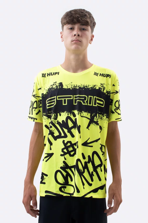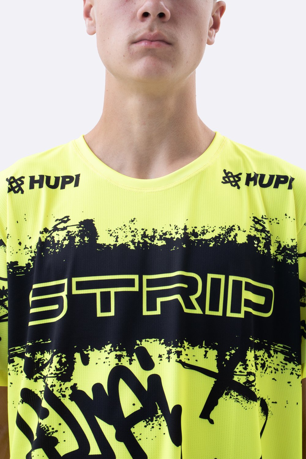 Como parte da Linha HUPI Bikes, a camiseta mantém coerência visual com os quadros e demais produtos da linha, reforçando a identidade do STRIP de forma direta e consistente, sem comprometer a simplicidade da peça.