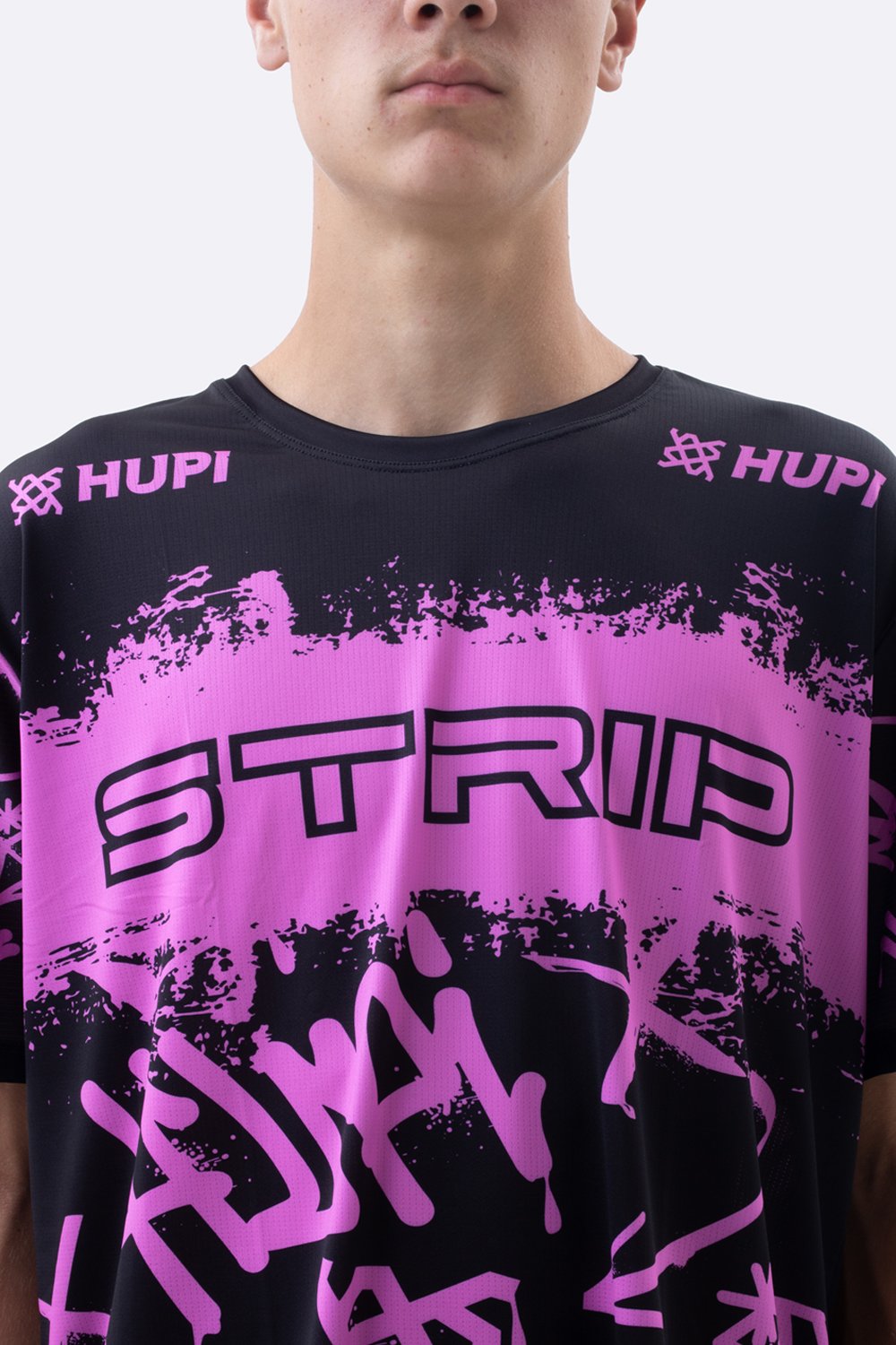 Como parte da Linha HUPI Bikes, a camiseta mantém coerência visual com os quadros e demais produtos da linha, reforçando a identidade do STRIP de forma direta e consistente, sem comprometer a simplicidade da peça.