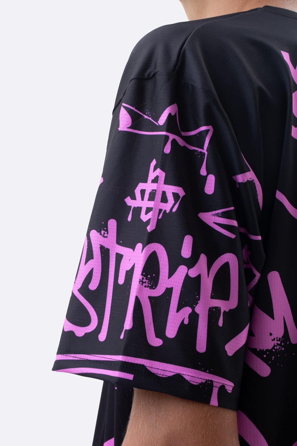 A proposta da camiseta é objetiva e bem resolvida: oferecer conforto, bom caimento e uma estampa bem definida, sem recorrer a excessos gráficos ou soluções complexas. O nome STRIP e o símbolo Naja aparecem em destaque, criando associação direta com o quadro que inspira a coleção e mantendo uma comunicação visual limpa, consistente e fácil de reconhecer dentro da linha Bikes.