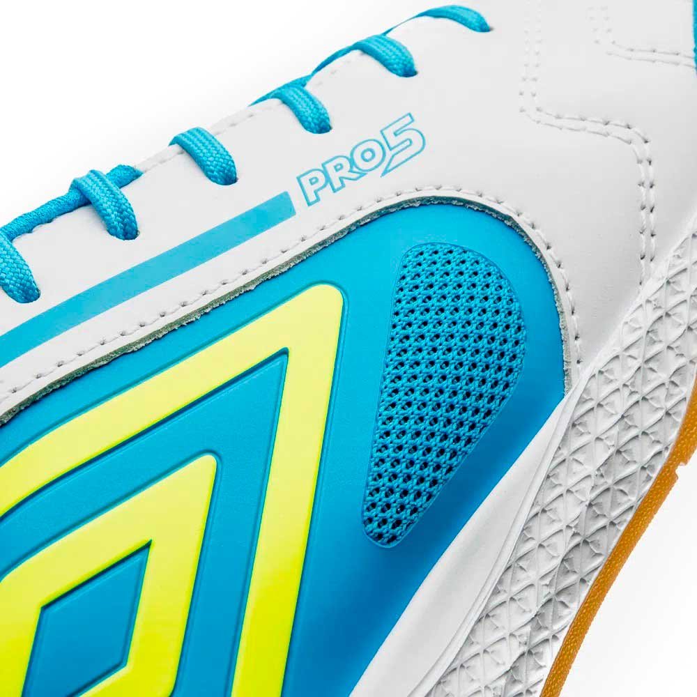 Chuteira Futsal Umbro Pro 5 Bump Branco e Azul