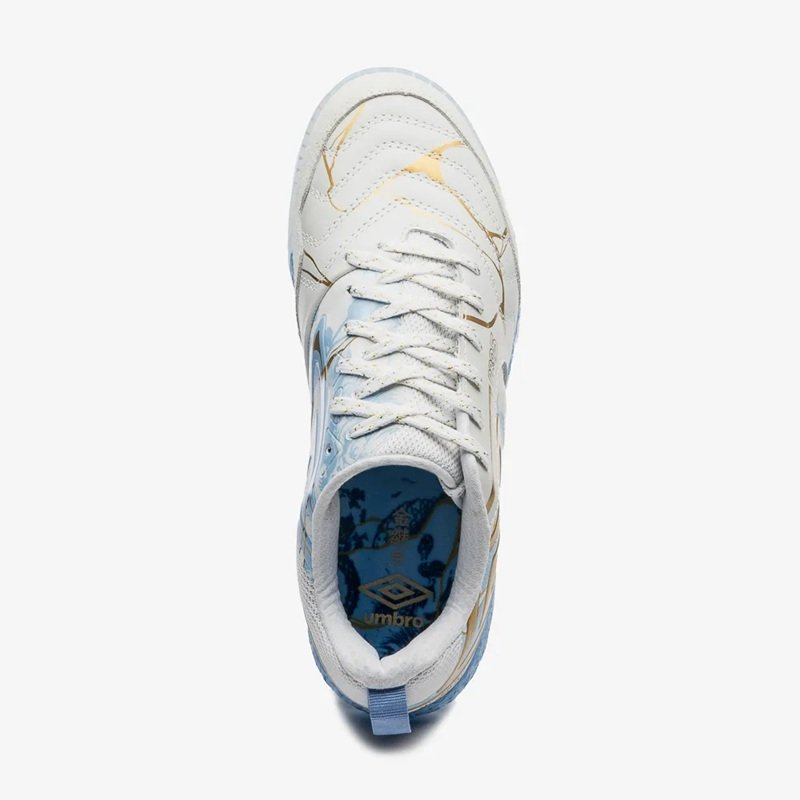 Chuteira Futsal Umbro Pro 5 Bump Kintsugi Branco e Azul