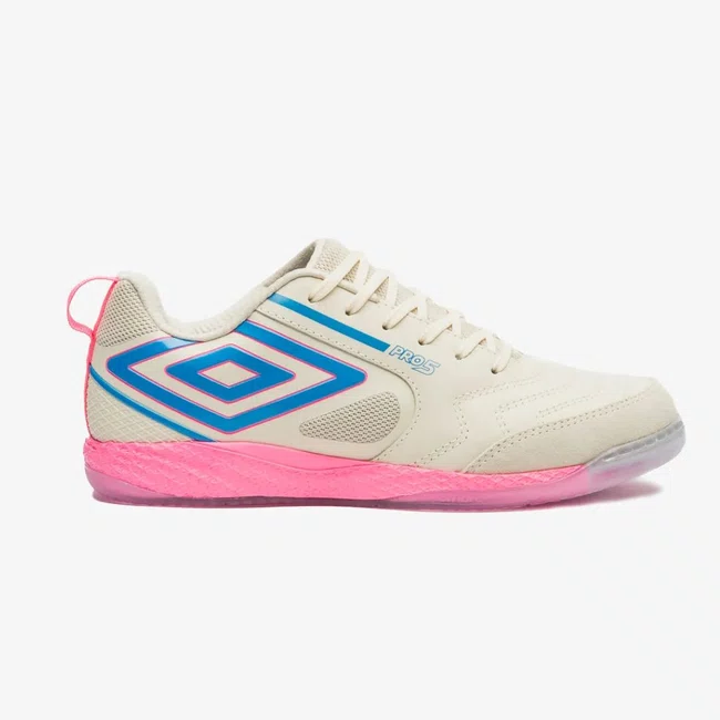 Chuteira Futsal Umbro Pro 5 Bump Masculina Bege e Rosa