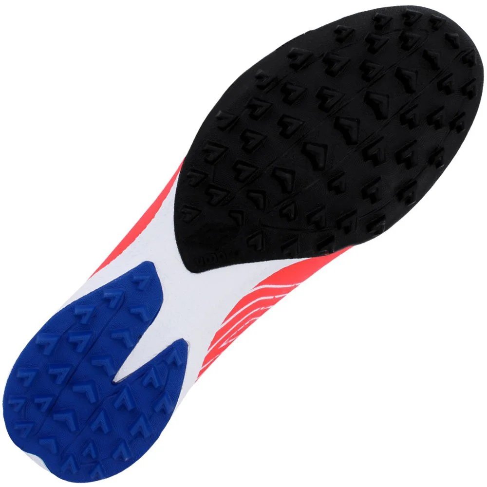 A sola da chuteira apresenta um design de travas especialmente desenvolvido para campos de society, garantindo uma tração excepcional em superfícies de grama artificial. Essas travas estrategicamente colocadas proporcionam estabilidade e agilidade, permitindo rápidas mudanças de direção e movimentos precisos durante o jogo.