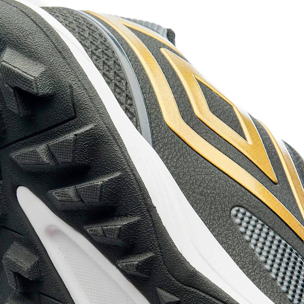 O solado de society HG conta com entressola de EVA de ponta-a-ponta e soleta em TPU, oferecendo excelente tração e estabilidade em campos sintéticos.