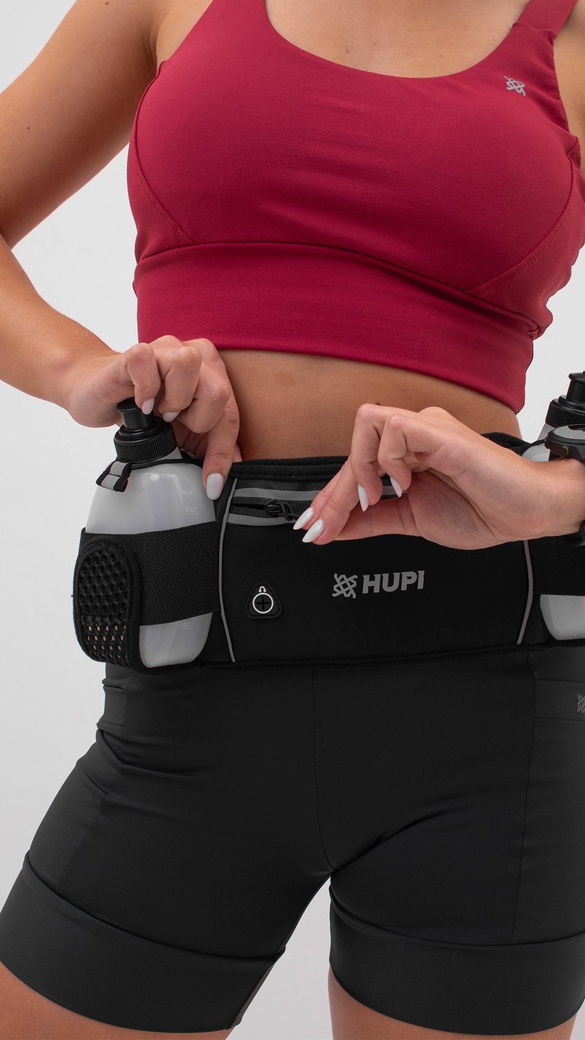 Cinto De Hidratação HUPI Running com 2 Garrafas e Pochete Preto