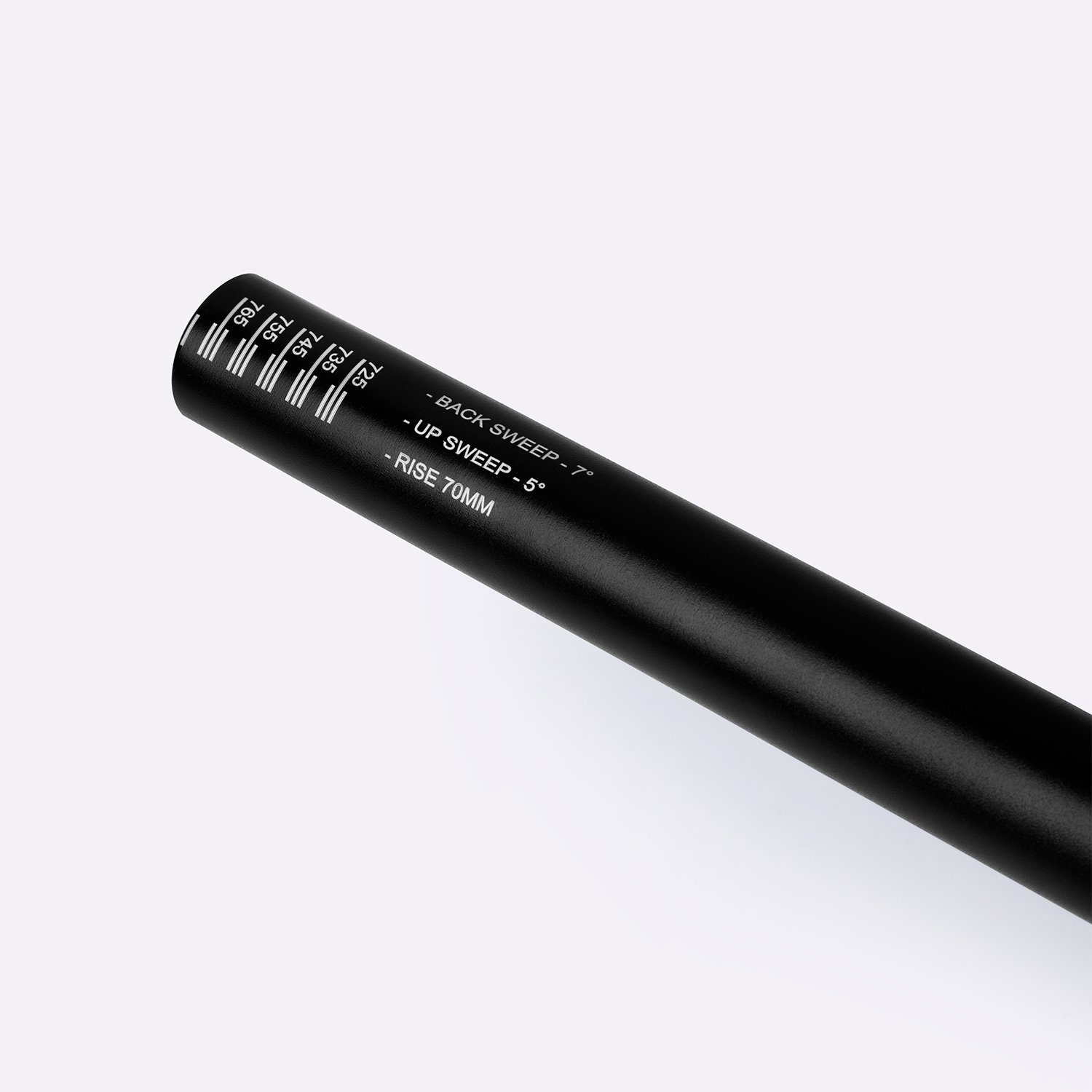 O back sweep de 7° e o up sweep de 5° são meticulosamente calculados para otimizar a ergonomia e minimizar a fadiga nas mãos durante longas descidas.