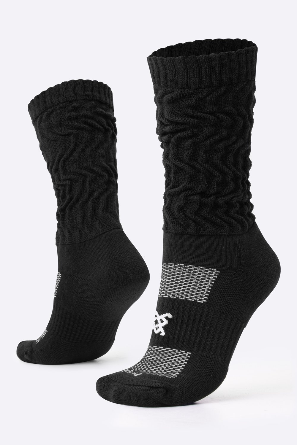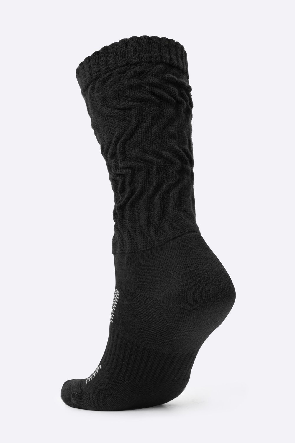 Na região dos dedos e calcanhar, os fios são dispostos em direções diferentes do restante da meia, fazendo com que a modelagem se torne muito mais anatômica, acompanhando o desenho dos pés. Esta característica também prolonga a durabilidade, impedindo o desgaste.