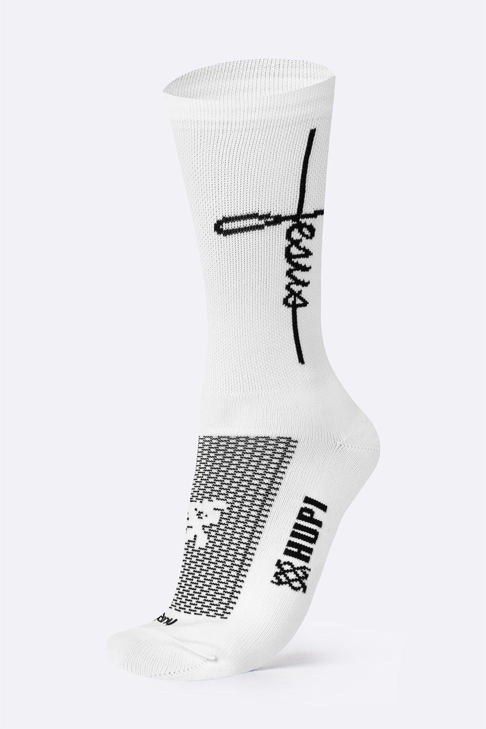 Meia HUPI Jesus Branco/Preto – Performance e Conforto Para Seu Melhor Desempenho
