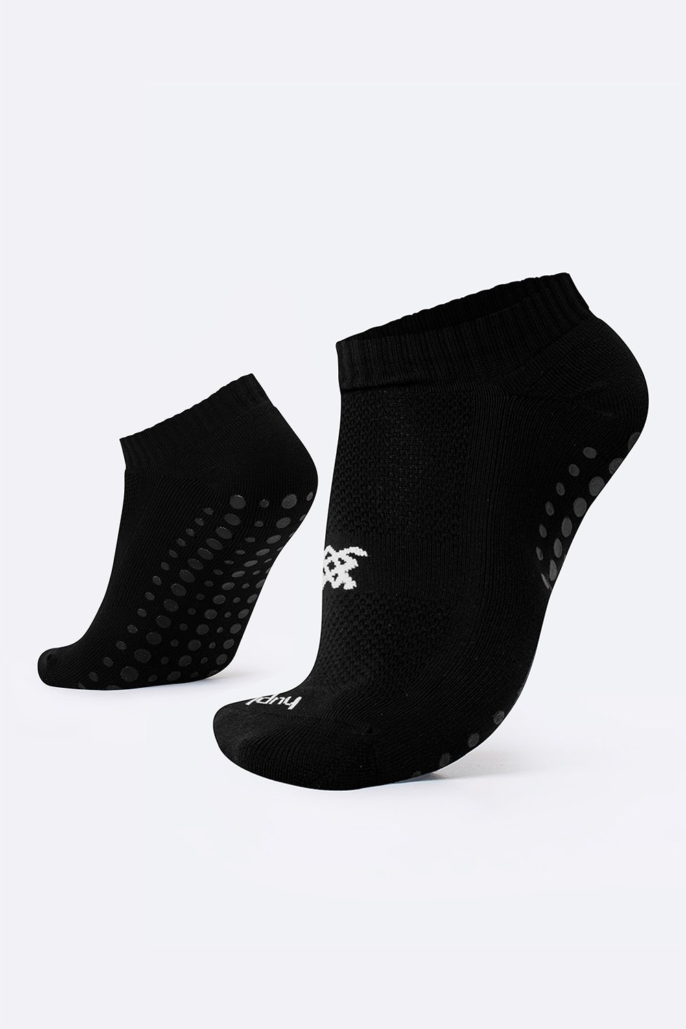 A Meia HUPI Pilates Preto Tamanho Plus é versátil, discreta e eficiente para práticas com ou sem sapatilhas minimalistas.