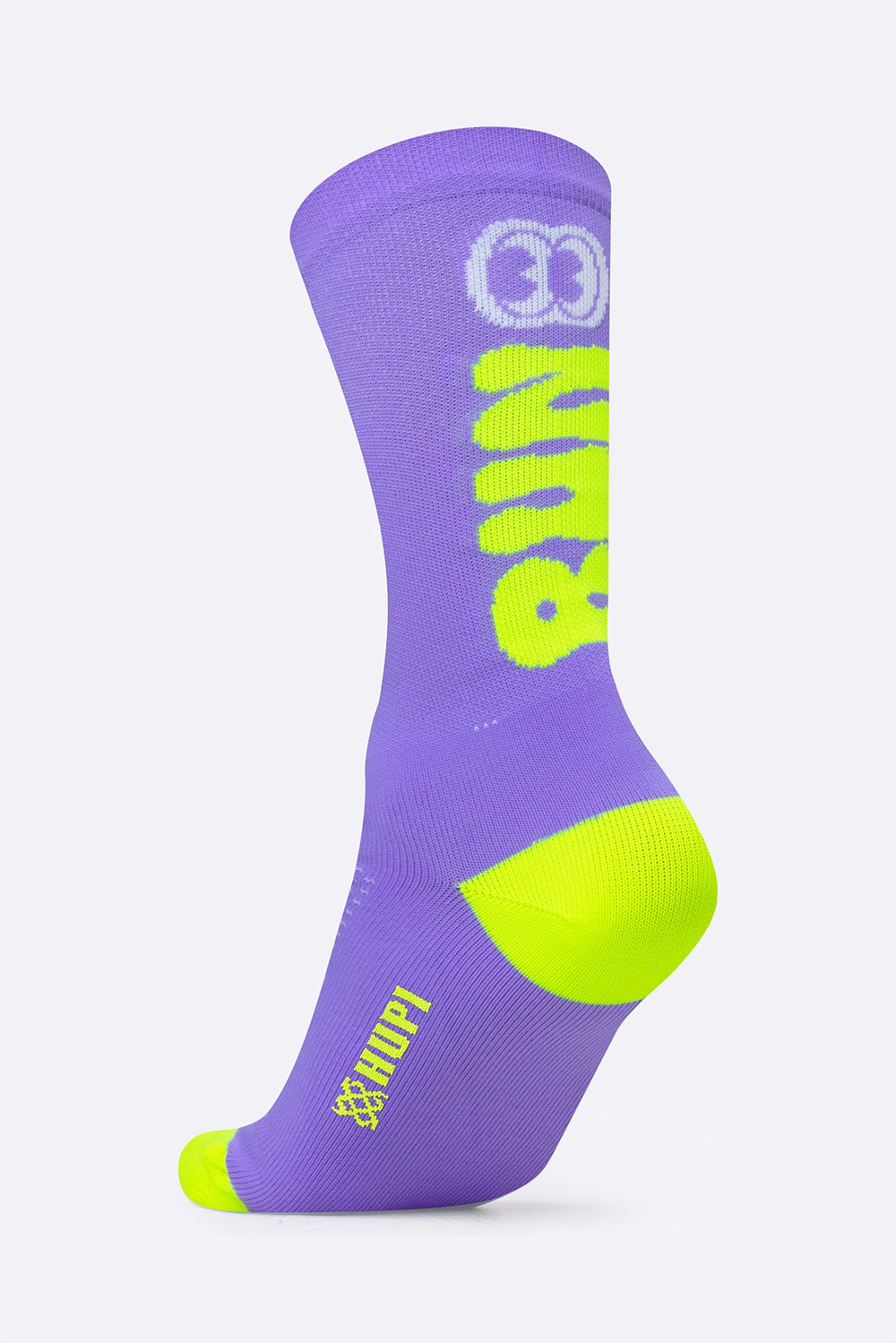 É o tipo de meia que você veste e esquece, porque ela simplesmente funciona. E com o visual lilás e amarelo neon, você ainda corre com estilo.
