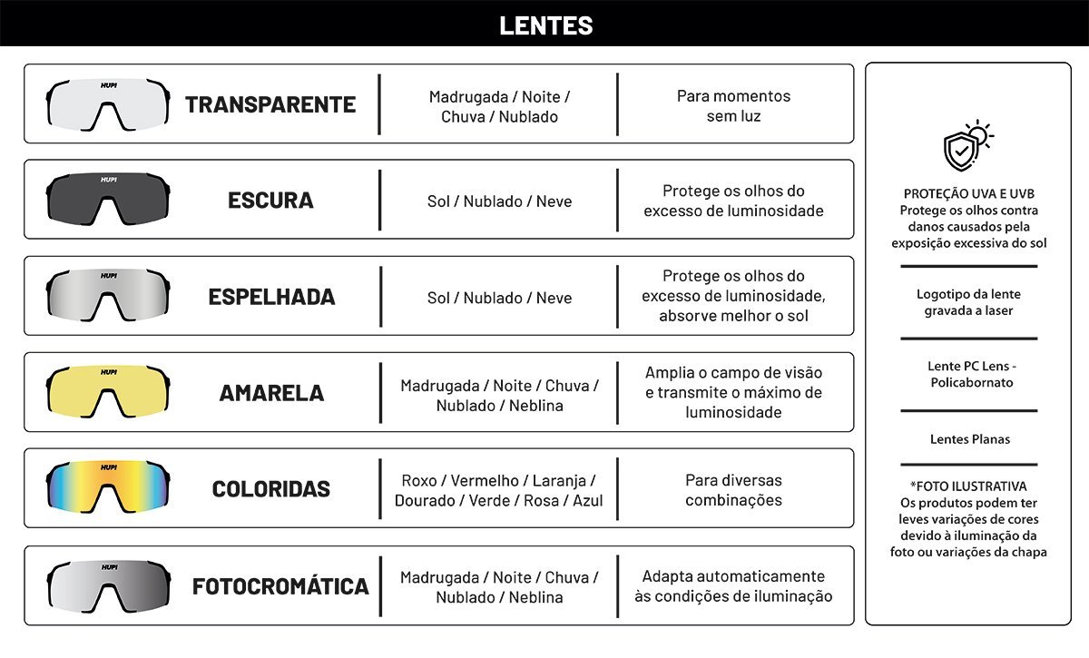 As lentes do modelo Andez são feitas de policarbonato (PC Lens), conhecido por sua clareza visual excepcional e resistência a impactos. Essas lentes planas proporcionam uma visão nítida e livre de distorções, essenciais para o desempenho esportivo.