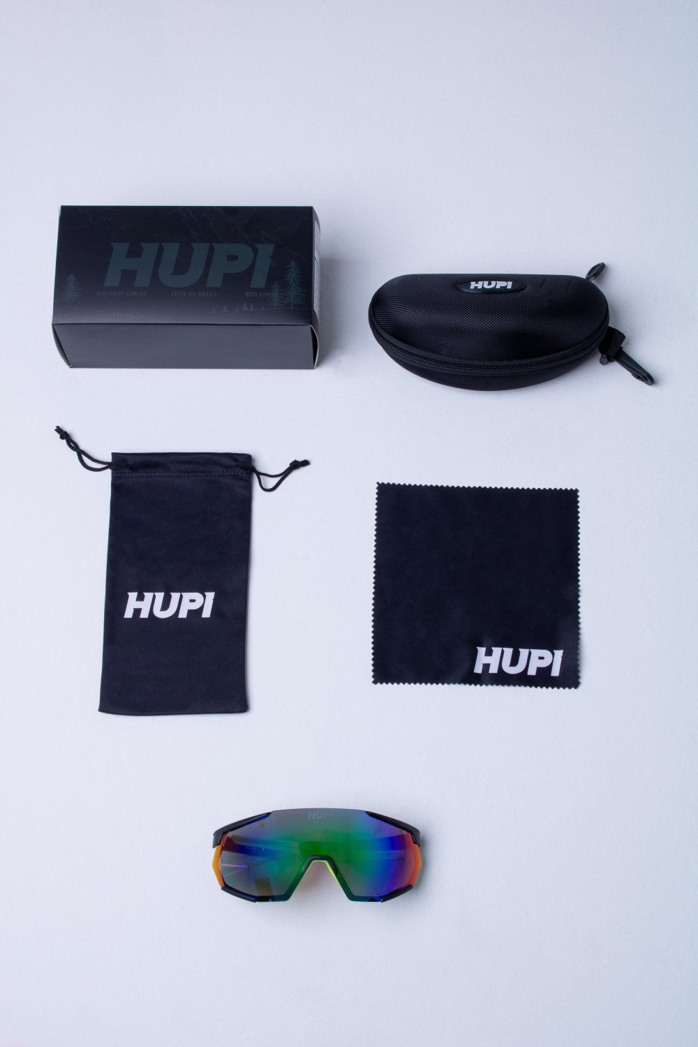Óculos de sol da Linha HUPI é pensado no bem estar do atleta, firmeza, estilo e muita proteção! A linha podemos combinar com mais peças como vestuário, meias, viseiras, macaquinhos...