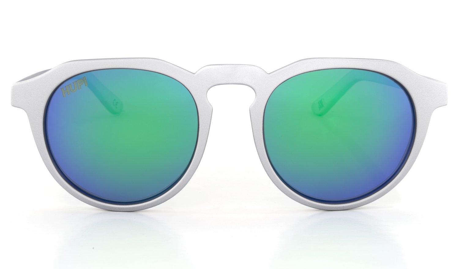 Óculos de Sol HUPI Spike Armação Prata Lente Verde Espelhado