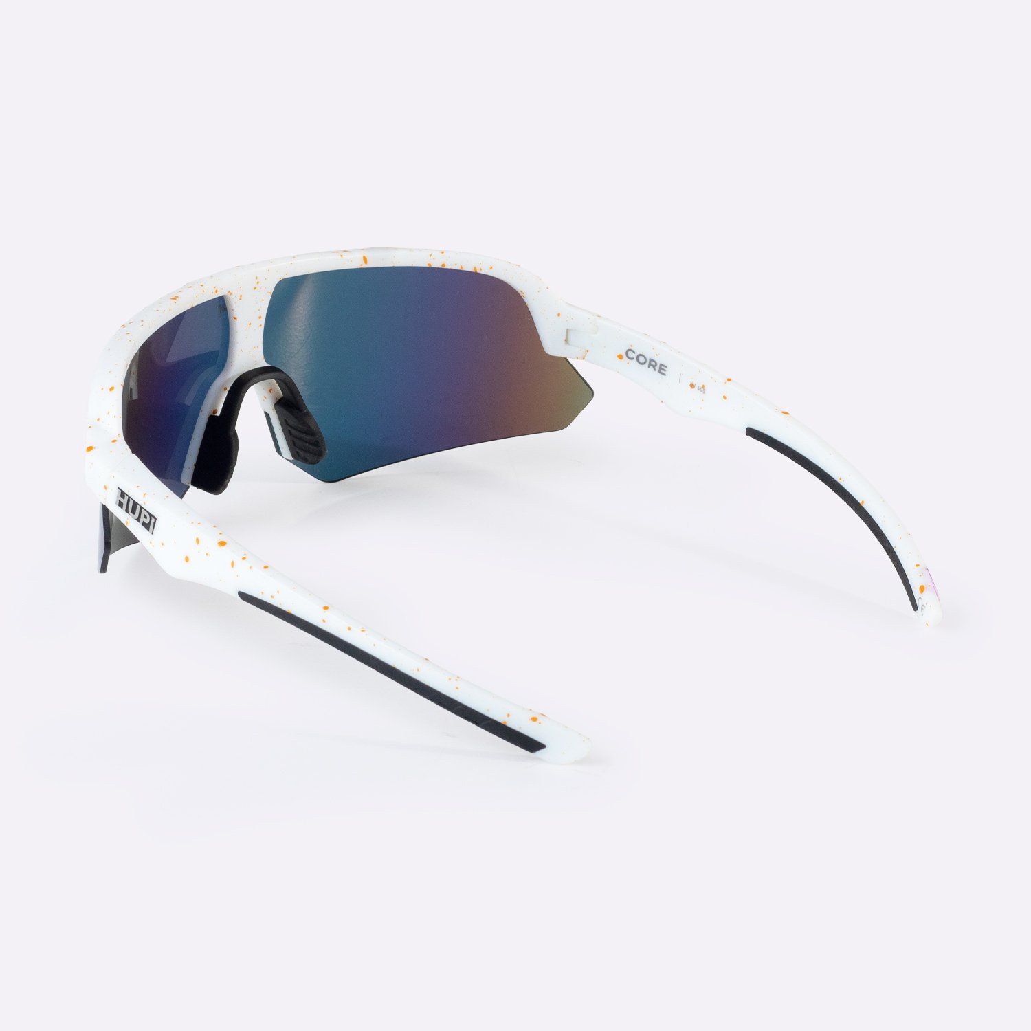 O HUPI Core Branco com lente dourado espelhado combina estética sofisticada com desempenho funcional. Como óculos de corrida, entrega estabilidade estrutural, proteção solar completa e controle eficiente de luminosidade.