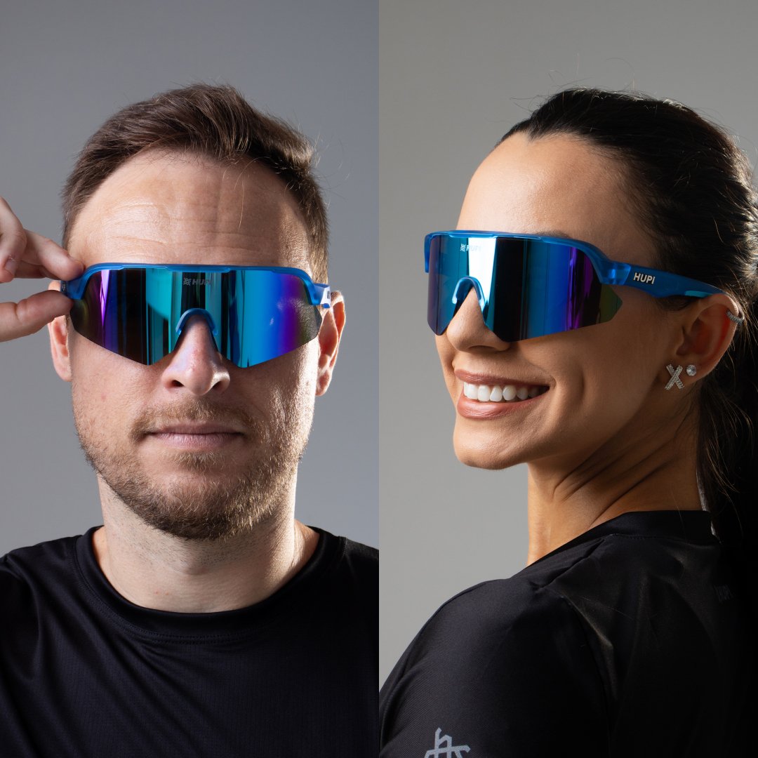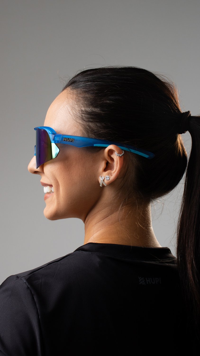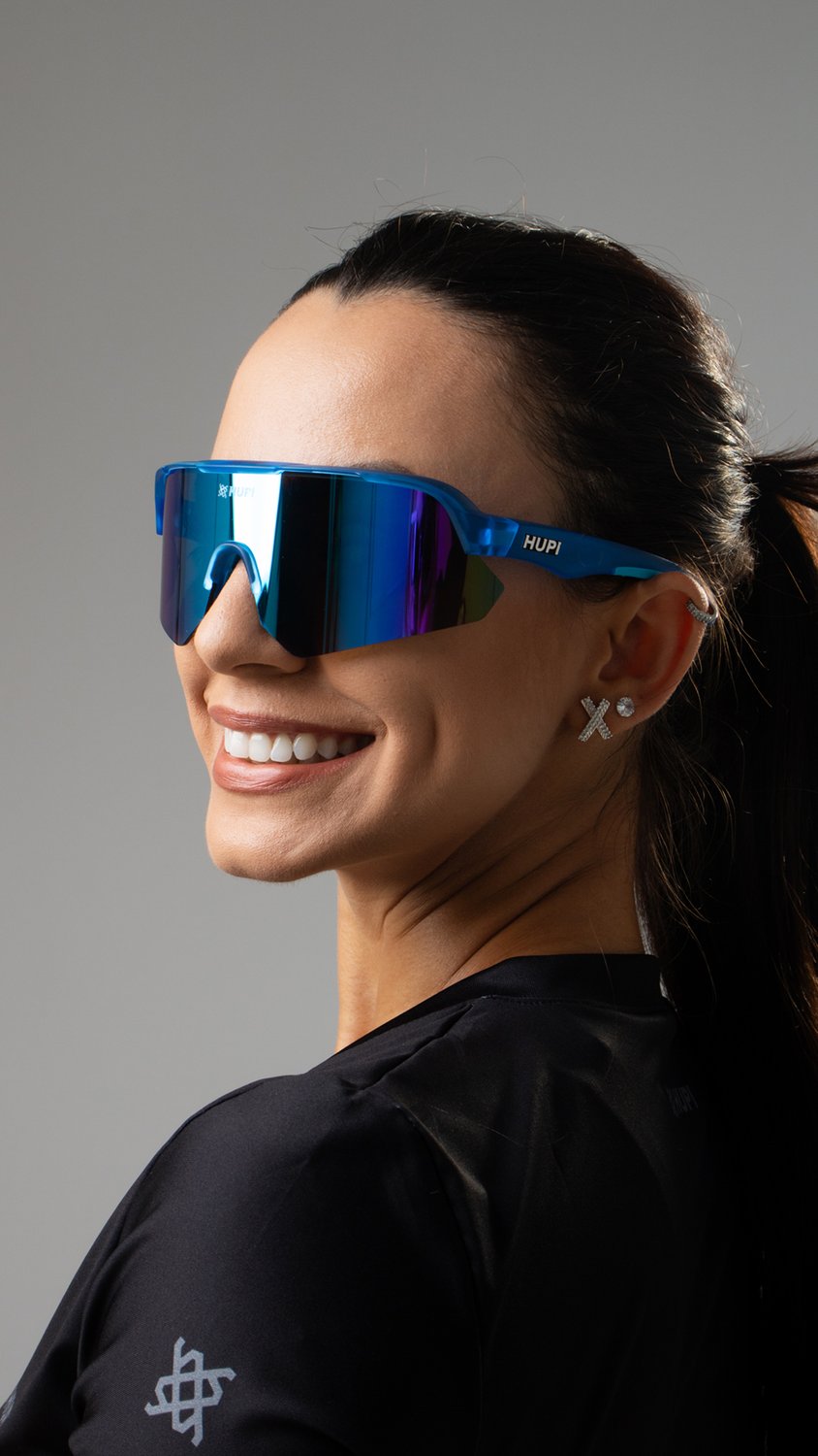 Engenharia e Performance do Óculos de Corrida HUPI Core Cristal Azul Lente Azul Espelhado