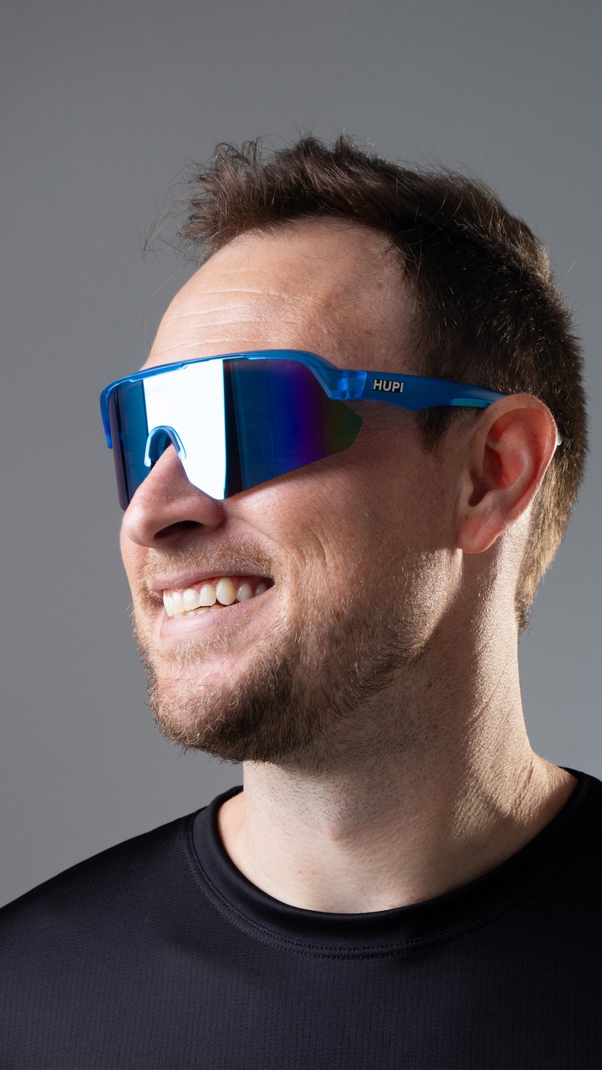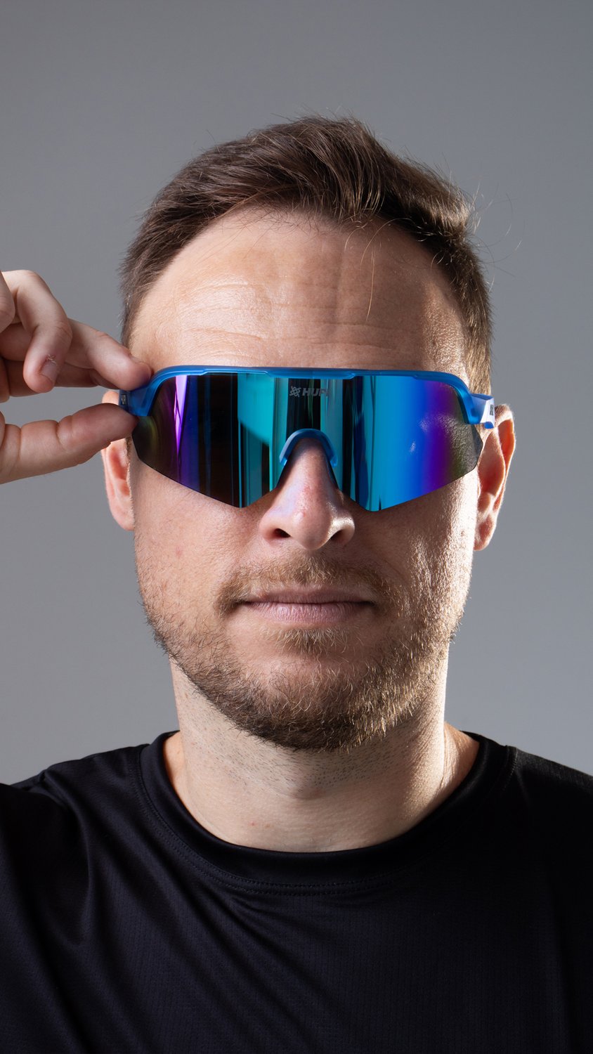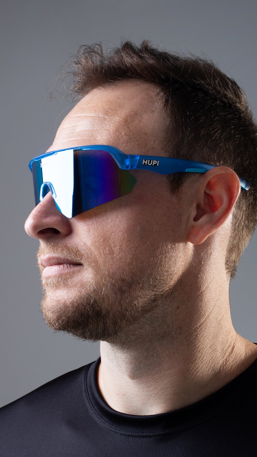 Engenharia e Performance do Óculos de Corrida HUPI Core Cristal Azul Lente Azul Espelhado