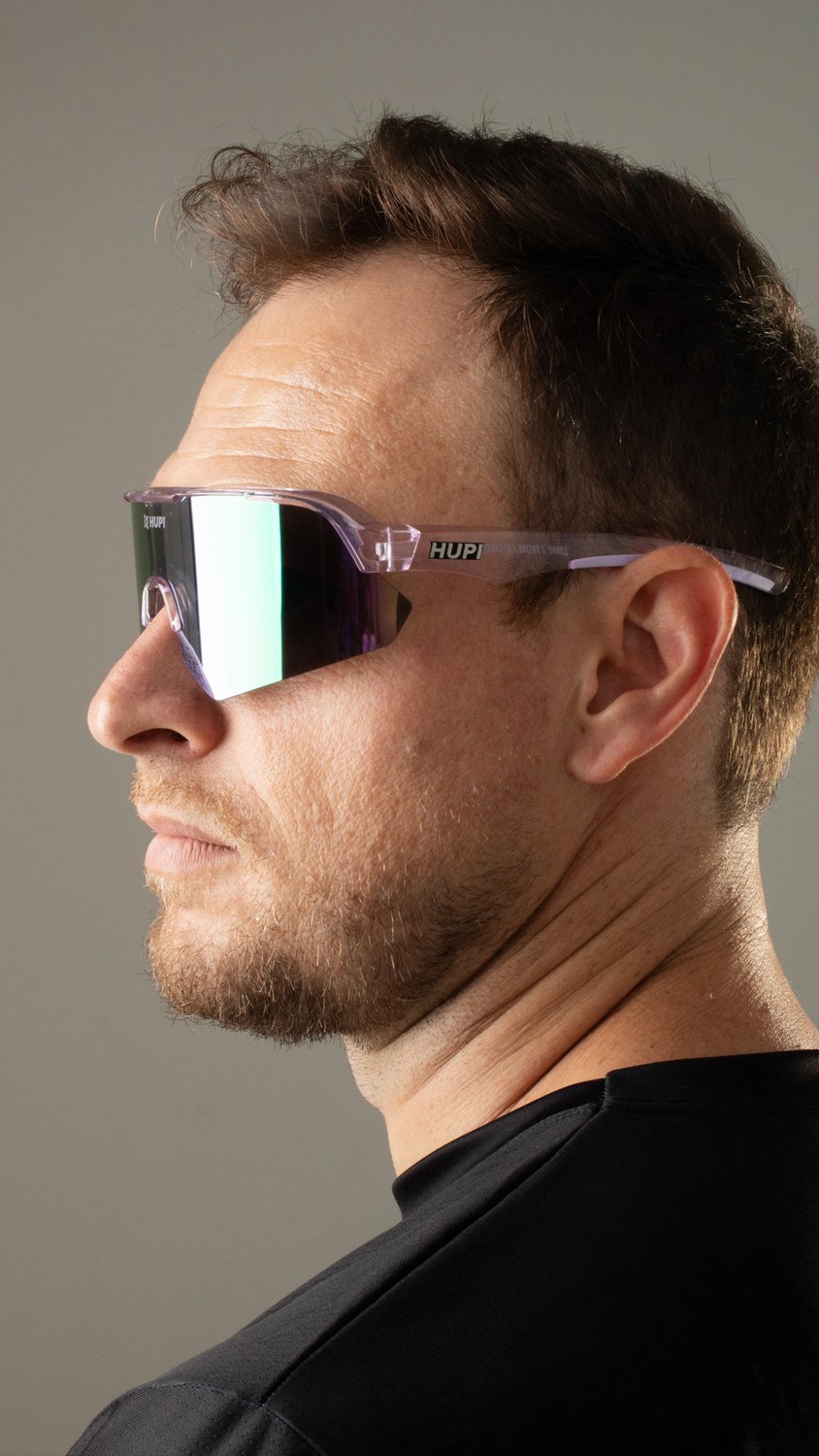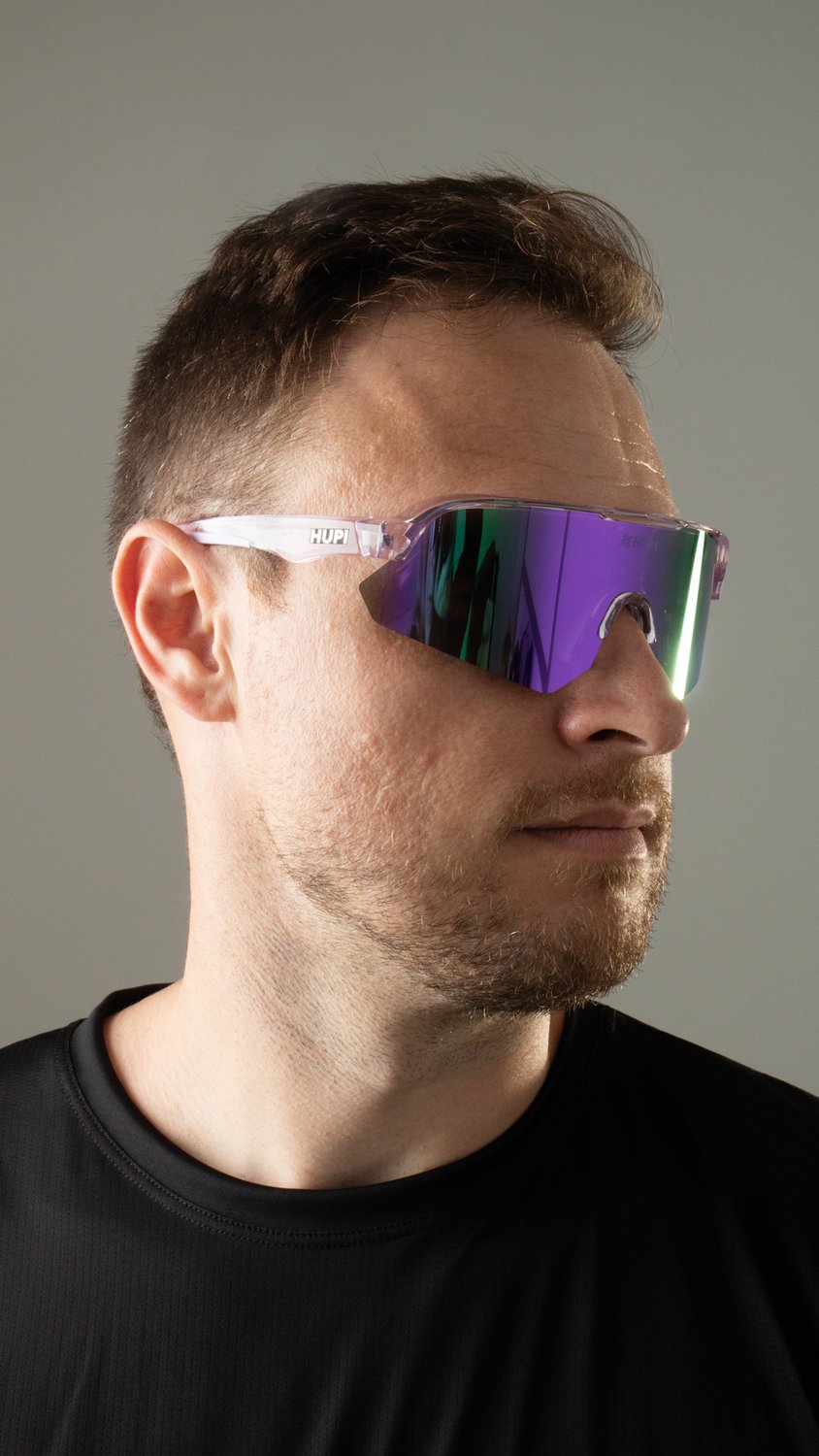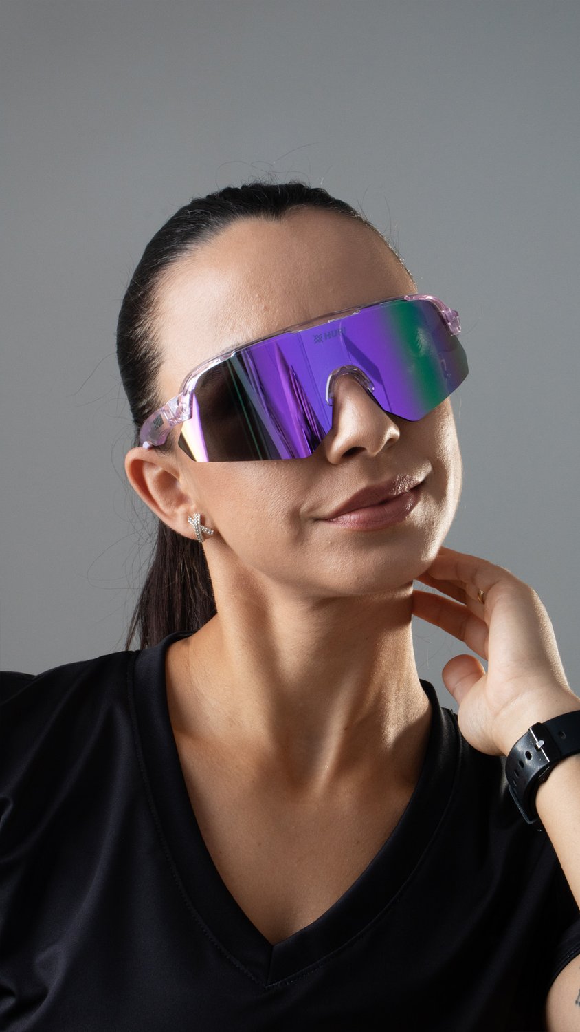 Engenharia e Performance do Óculos de Corrida HUPI Core Cristal Roxo Lente Roxo Espelhado