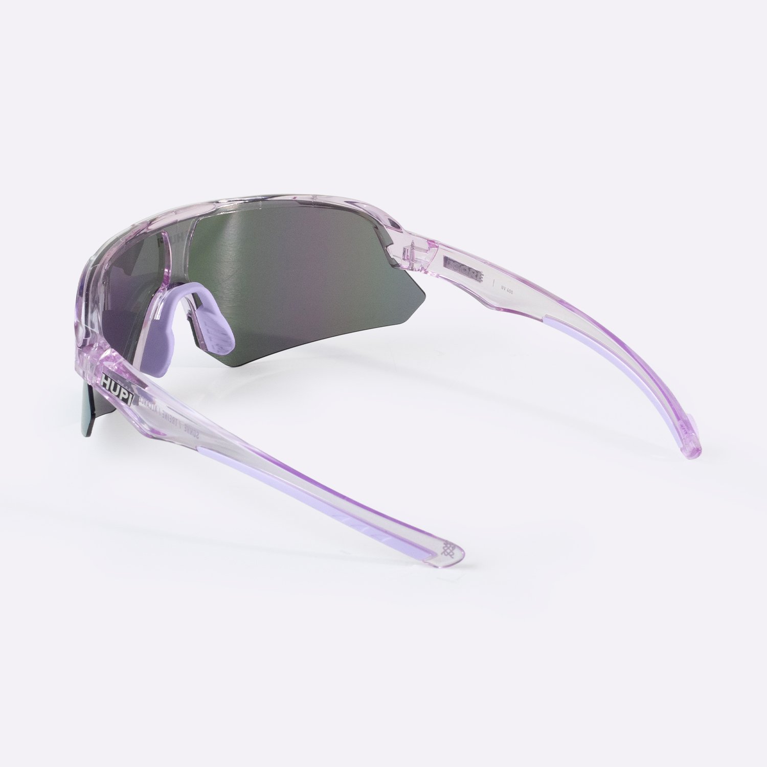 O HUPI Core Cristal Roxo combina estética impactante com desempenho técnico. Como óculos de corrida, entrega estabilidade estrutural, proteção solar completa e controle eficiente de luminosidade.