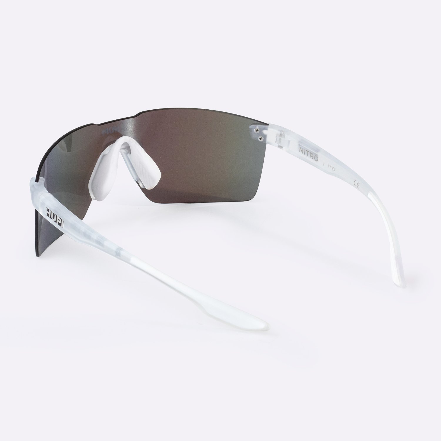 O design esportivo rimless com monolente cria uma superfície visual contínua, amplia a cobertura periférica e reforça a proposta Nitro de performance focada e sem distrações