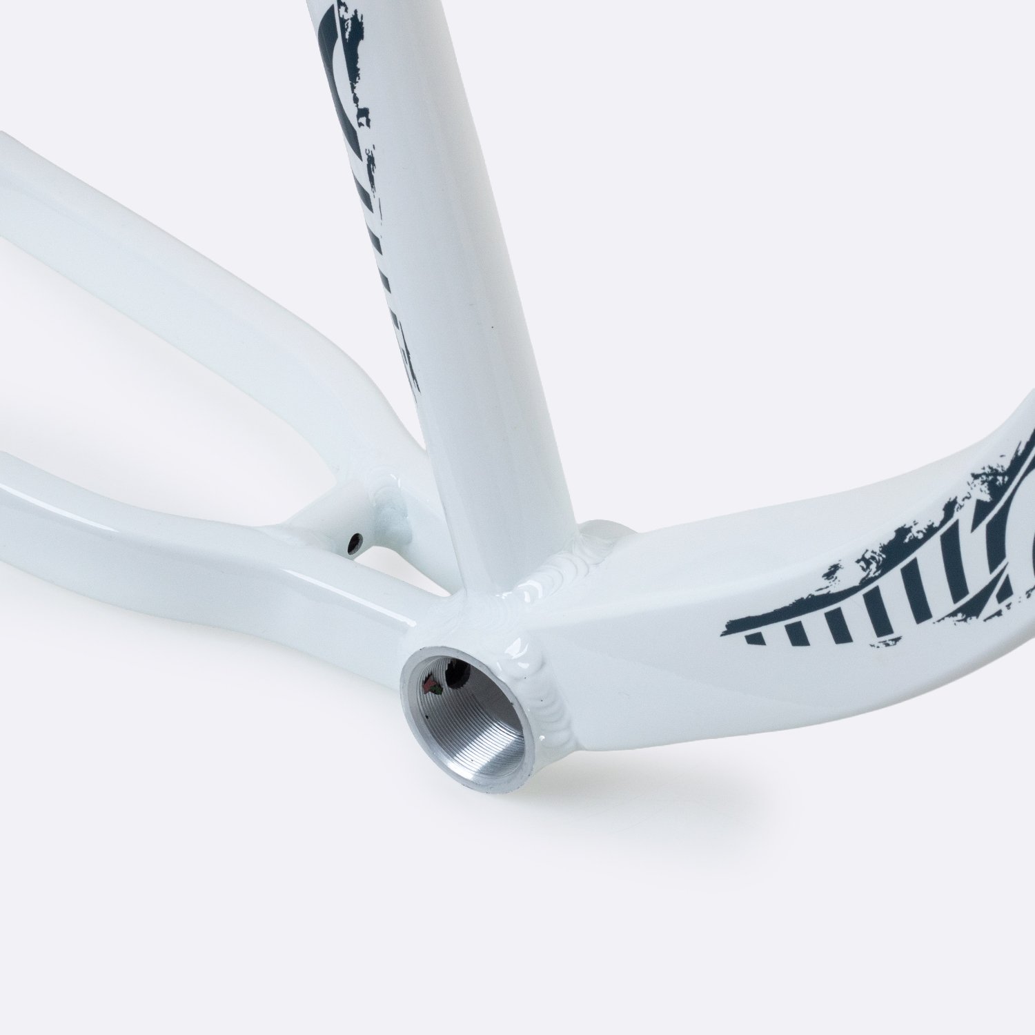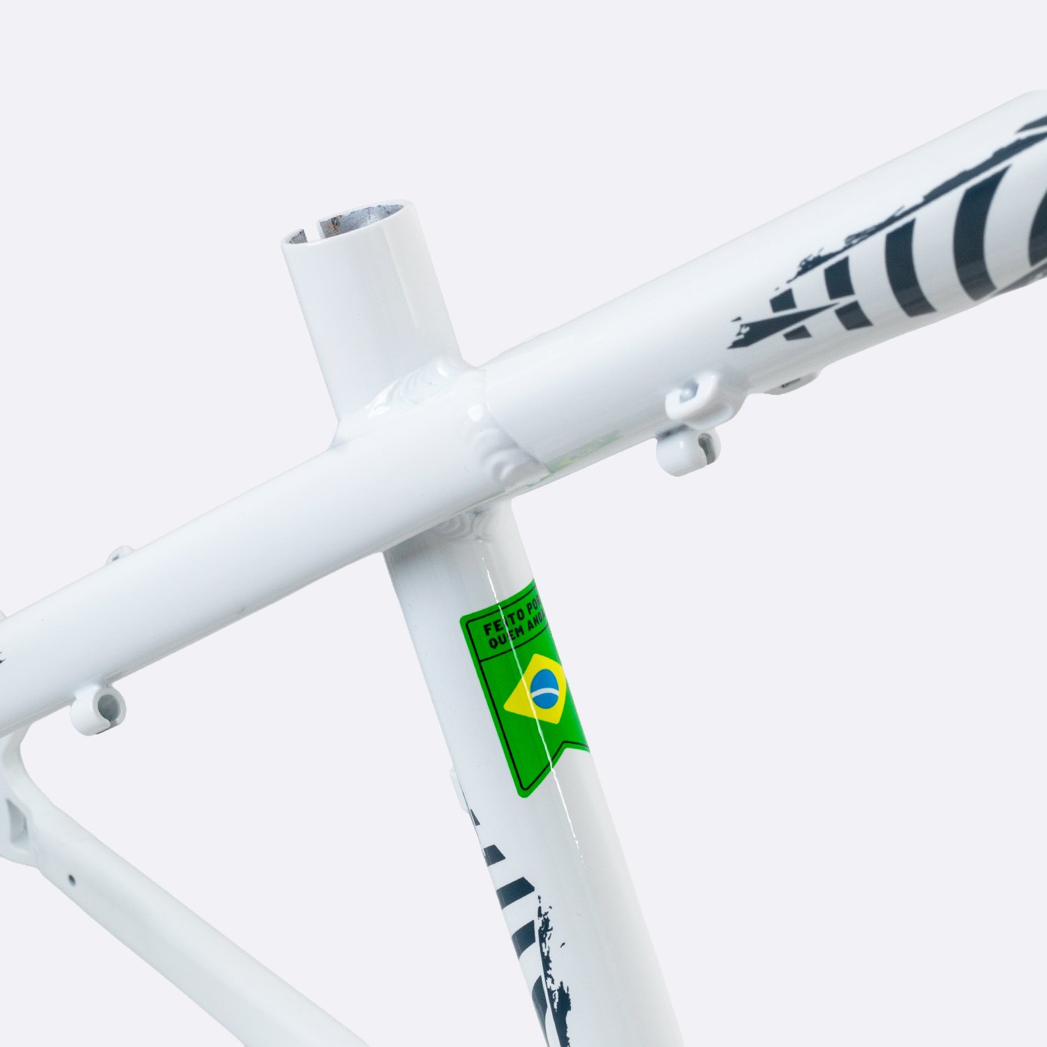 A proposta do Naja V10 é clara e direta: entregar um quadro confiável, com geometria que favorece o domínio da bicicleta e uma construção preparada para suportar uso intenso. O acabamento branco com detalhes em preto adiciona identidade visual ao produto, valorizando o conjunto sem interferir na funcionalidade ou na compatibilidade com componentes do mercado.