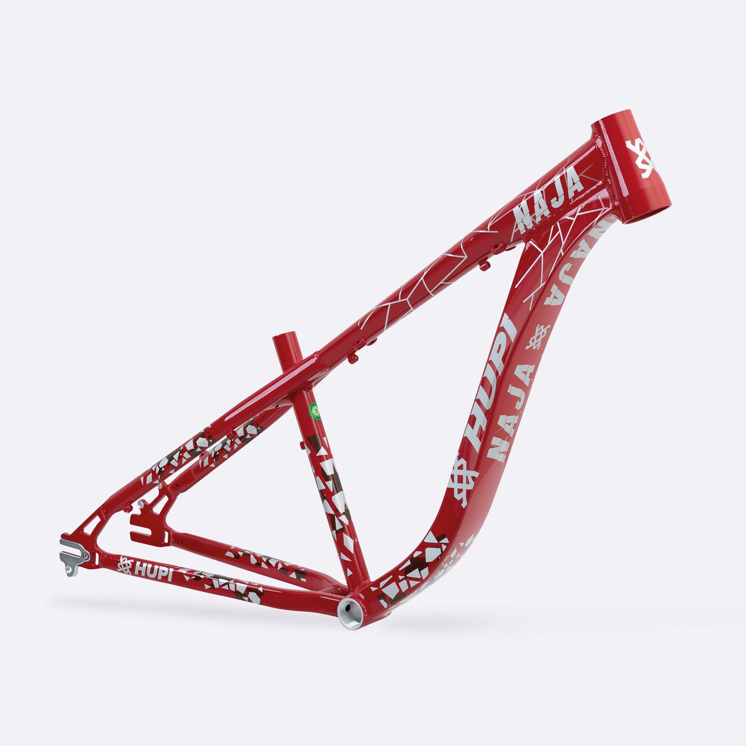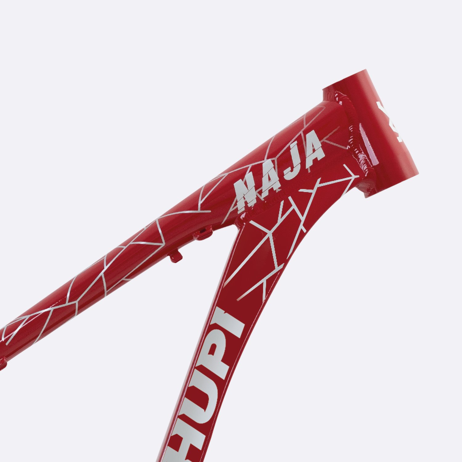 O Quadro HUPI Naja V9 Cereja/Prata Gancheira Horizontal é muito mais do que a base para uma bike: ele é a tradução da personalidade de quem quer se destacar em qualquer lugar.