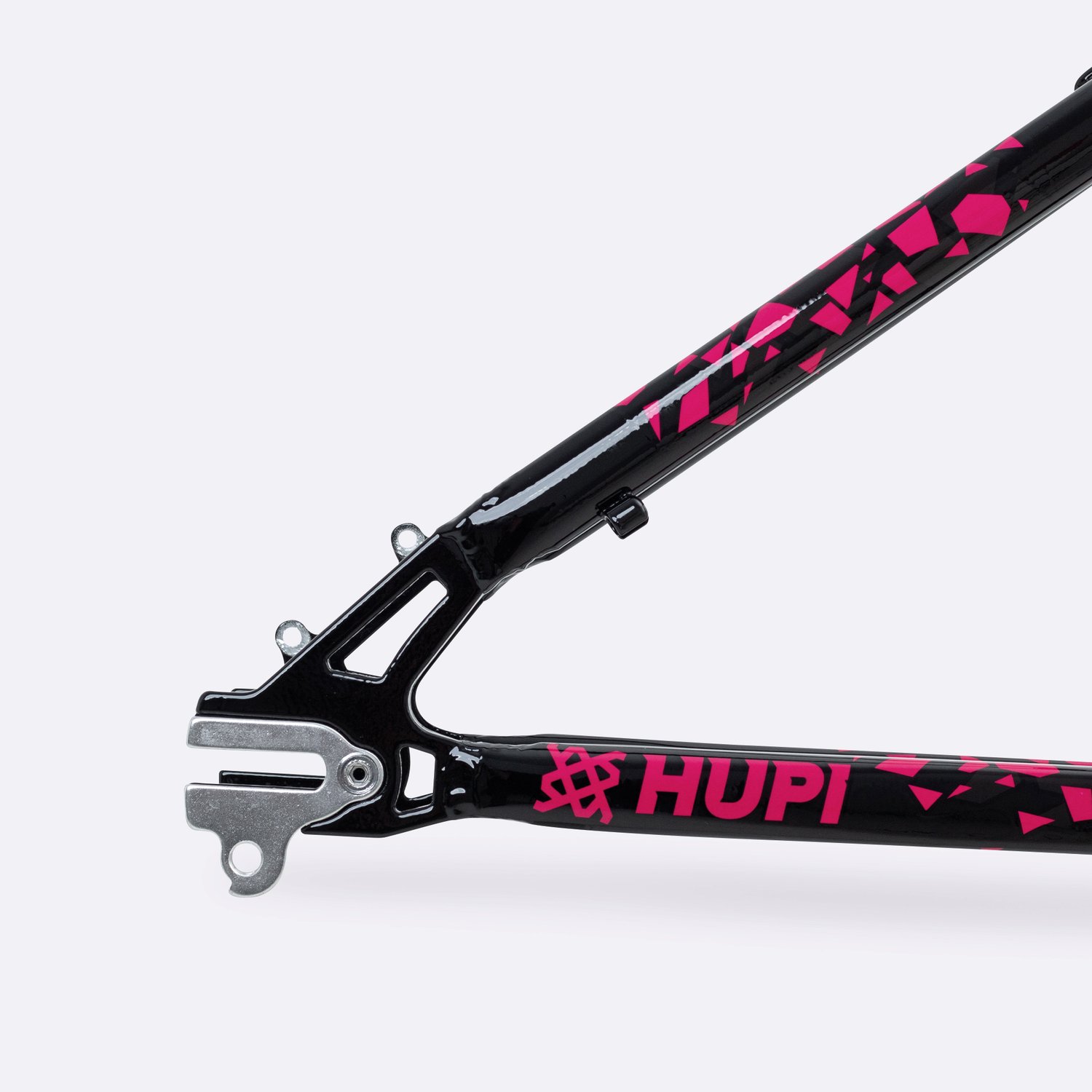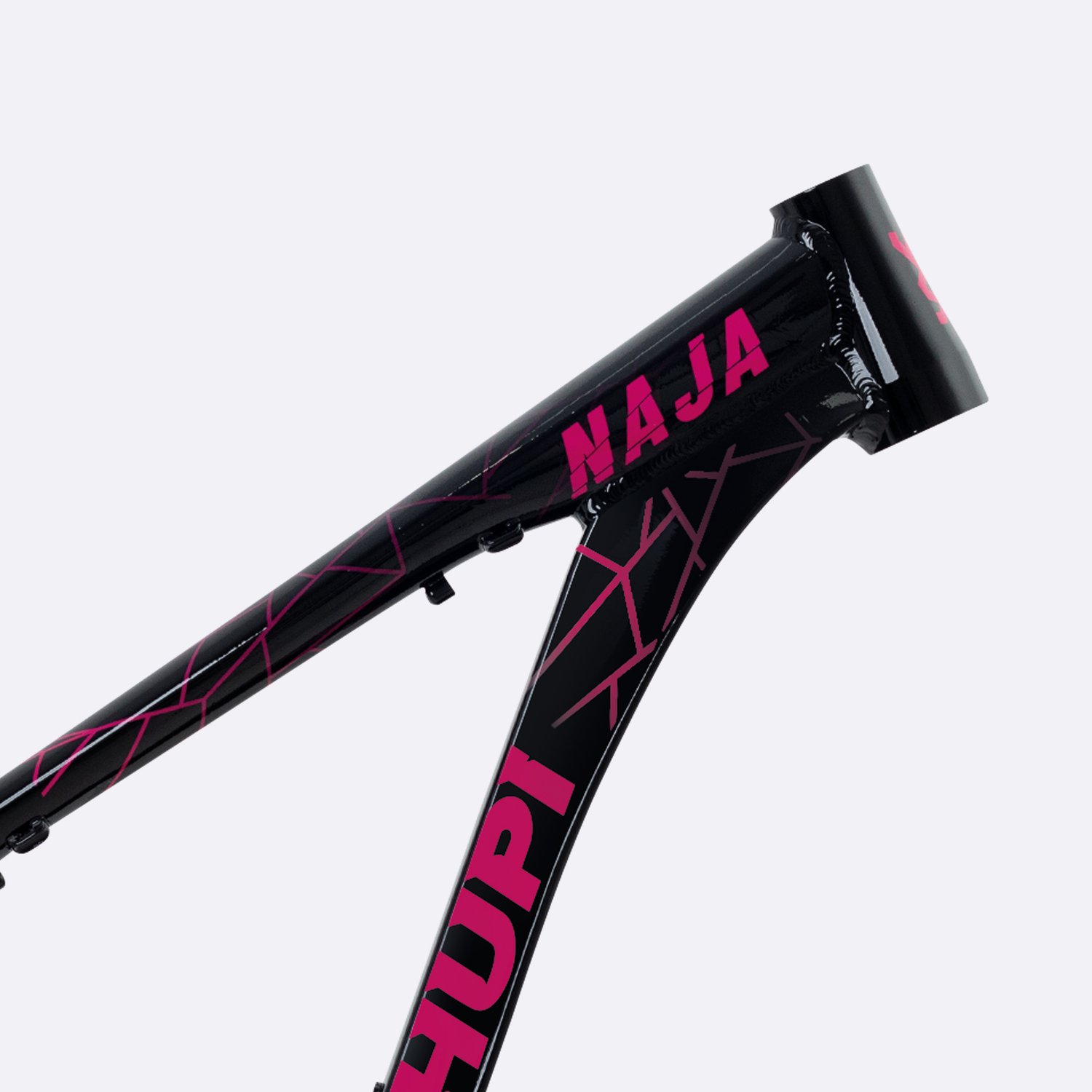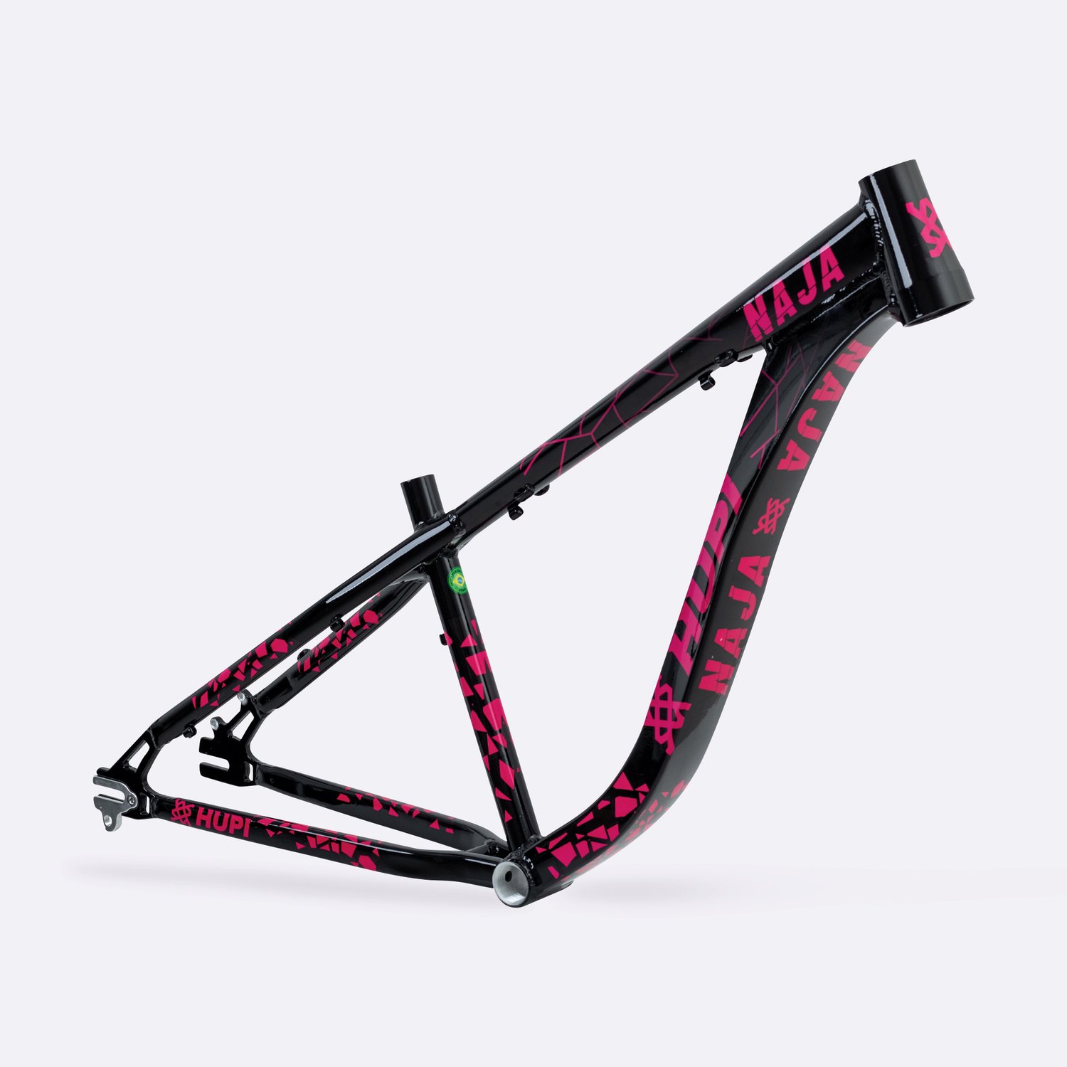 O Quadro HUPI Naja V9 Preto/Pink Gancheira Horizontal é muito mais do que a base para uma bike: ele é a tradução da personalidade de quem quer se destacar em qualquer lugar.