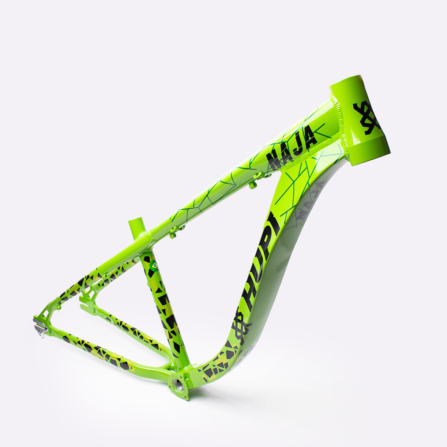 Quadro HUPI Naja V9, uma evolução notável do modelo V8, projetado para superar expectativas. Com uma variedade vibrante de cores, este quadro é a escolha ideal para montagem de bikes Single Speed.