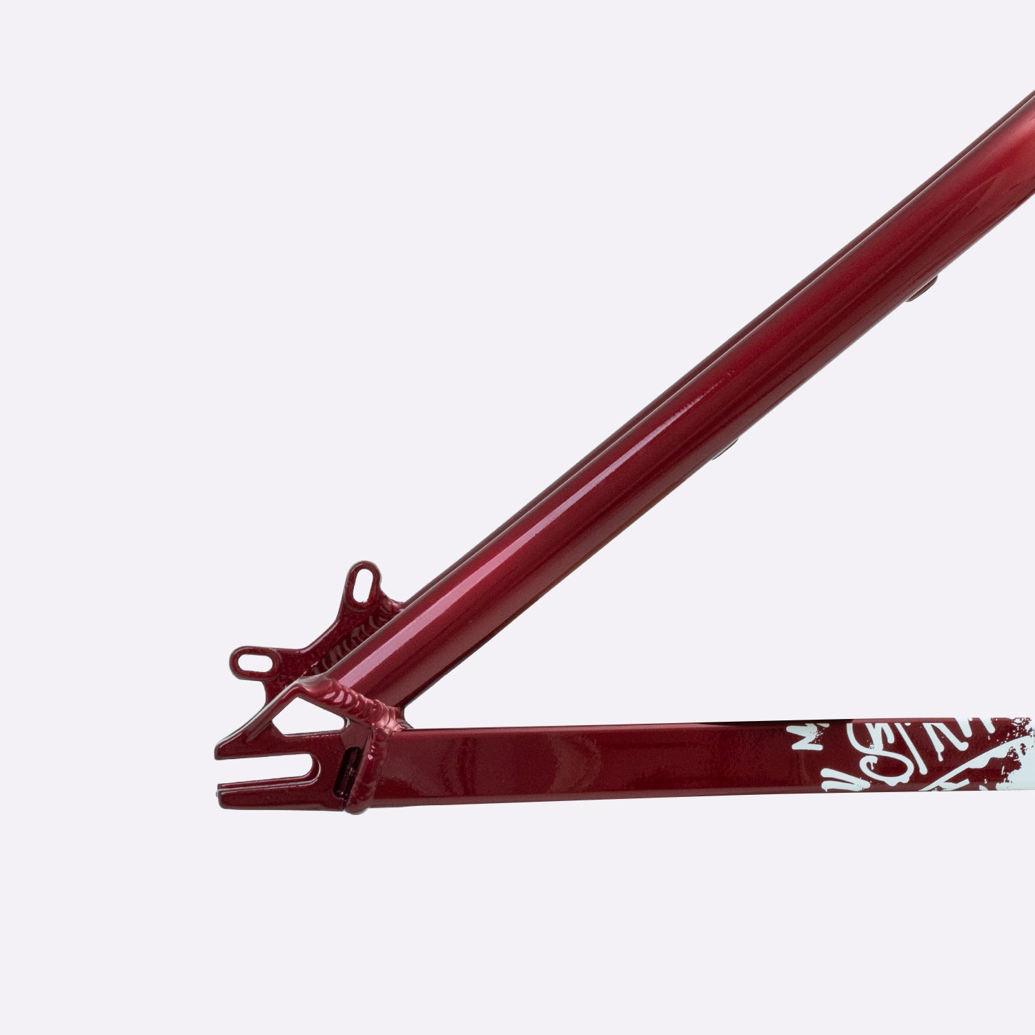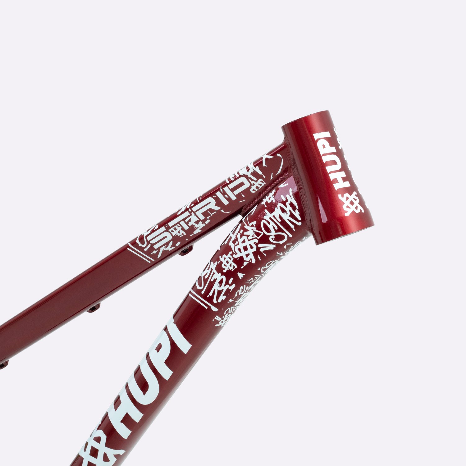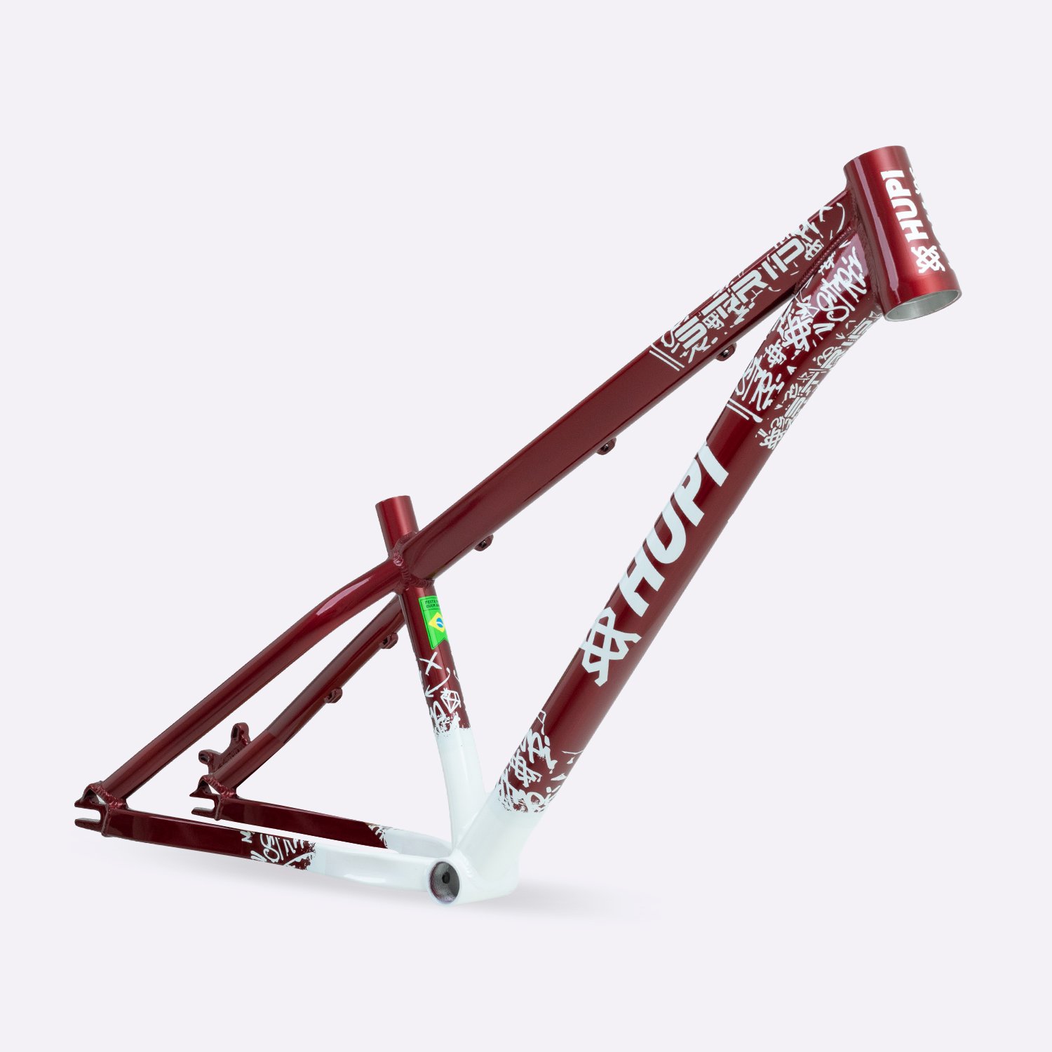 Sua geometria compacta favorece controle e estabilidade da bicicleta, enquanto o triângulo traseiro curto contribui para respostas rápidas nas manobras. A pintura na cor cereja com grafismos HUPI agrega identidade visual marcante ao produto final, criando um conjunto atrativo para montagens de bikes com estilo e personalidade.