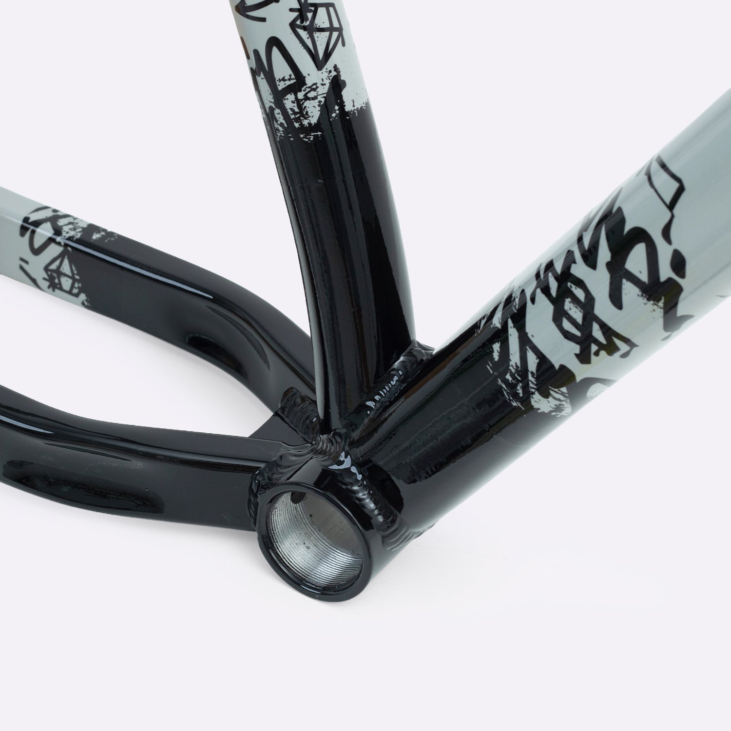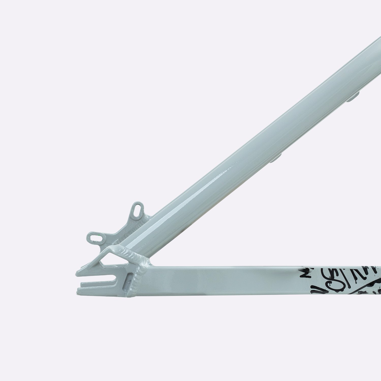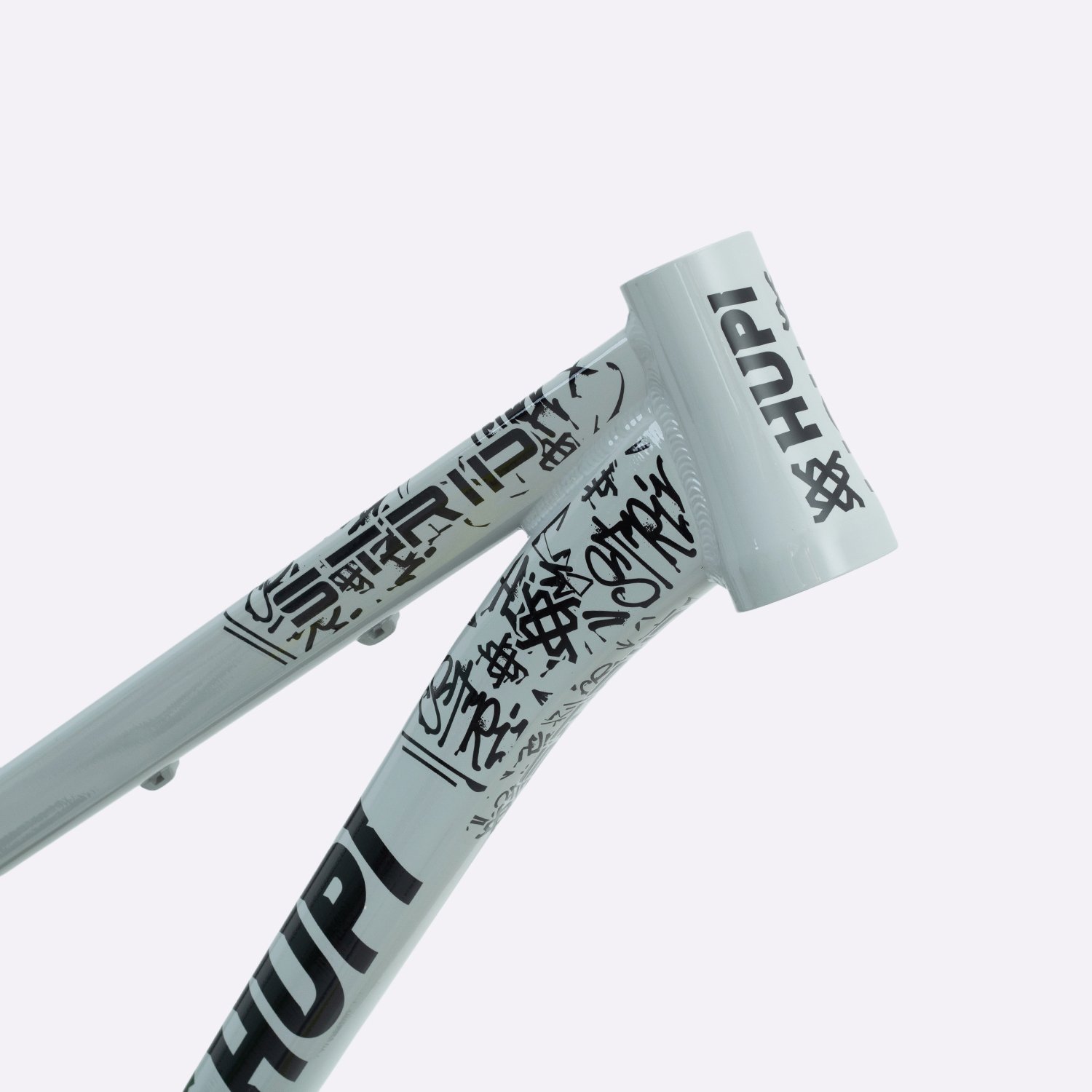 Sua geometria compacta favorece controle e estabilidade da bicicleta, enquanto o triângulo traseiro curto contribui para respostas rápidas nas manobras. A pintura na cor cinza com grafismos HUPI agrega identidade visual marcante ao produto final, criando um conjunto atrativo para montagens de bikes com estilo e personalidade.