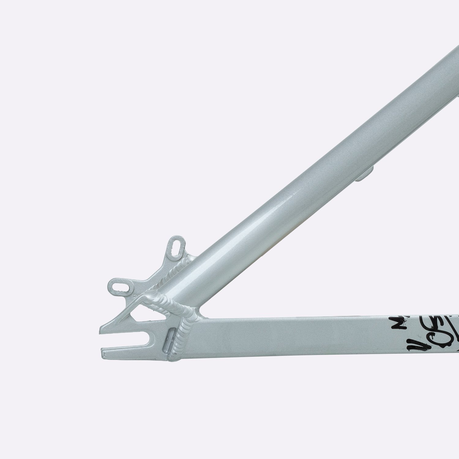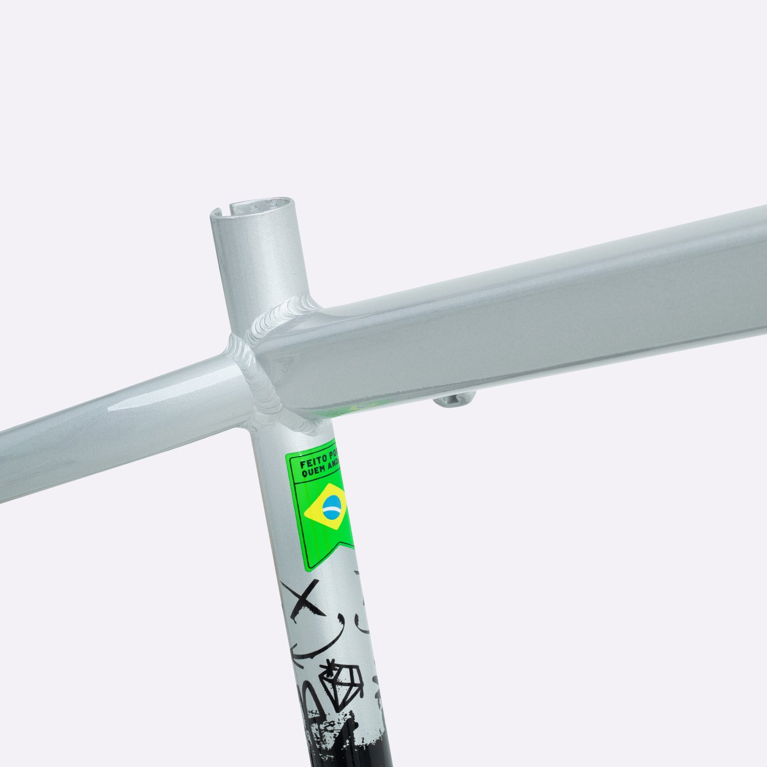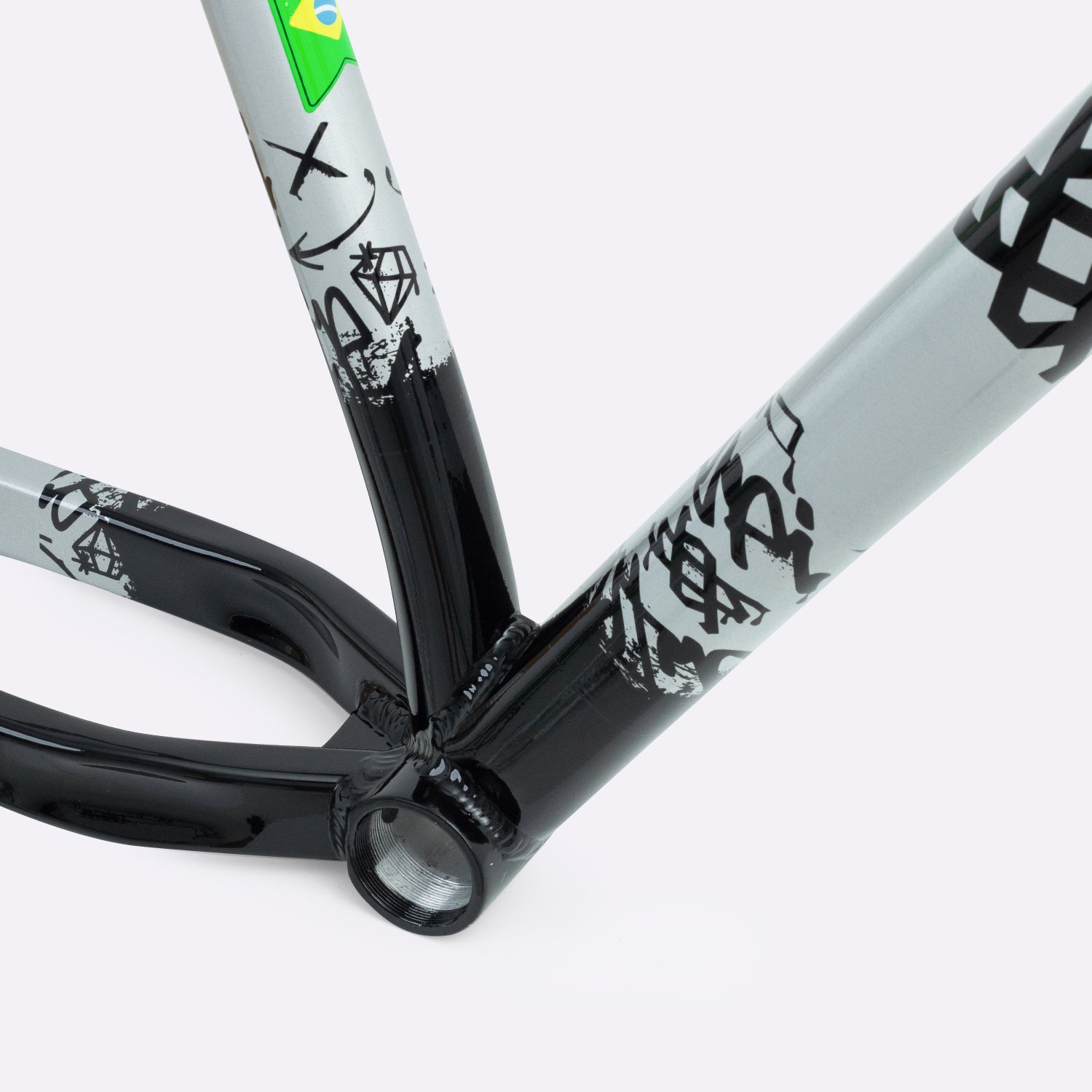 Sua geometria compacta favorece controle e estabilidade da bicicleta, enquanto o triângulo traseiro curto contribui para respostas rápidas nas manobras. A pintura na cor prata com grafismos HUPI agrega identidade visual marcante ao produto final, criando um conjunto atrativo para montagens de bikes com estilo e personalidade.