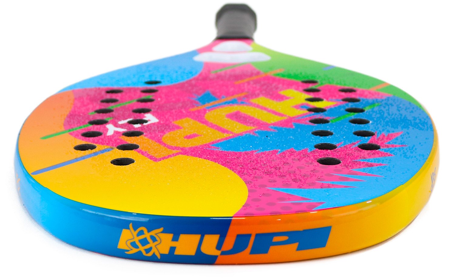 Os furos das raquetes HUPI são pensando na resistência do ar, a precisão e potência aumentam quando a raquete possui uma quantidade de furos adequada. Com quantidade de furos desse modelo a resistência do ar será menor, assim o corpo deve cansar menos durante uma partida.