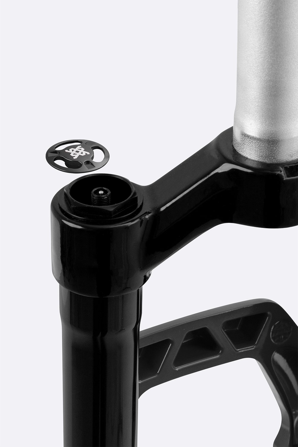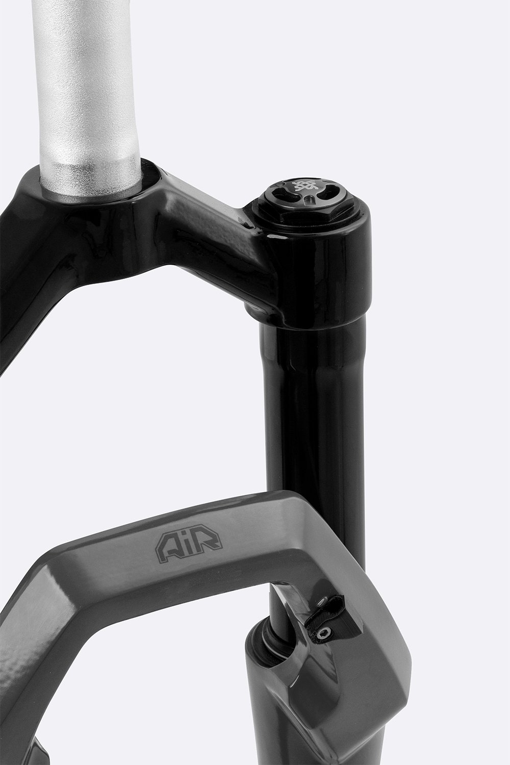 Sua construção utiliza monobloco em liga de magnésio, hastes de alumínio 6082-T6 anodizado de 32mm e tubo superior tratado com shot peening.