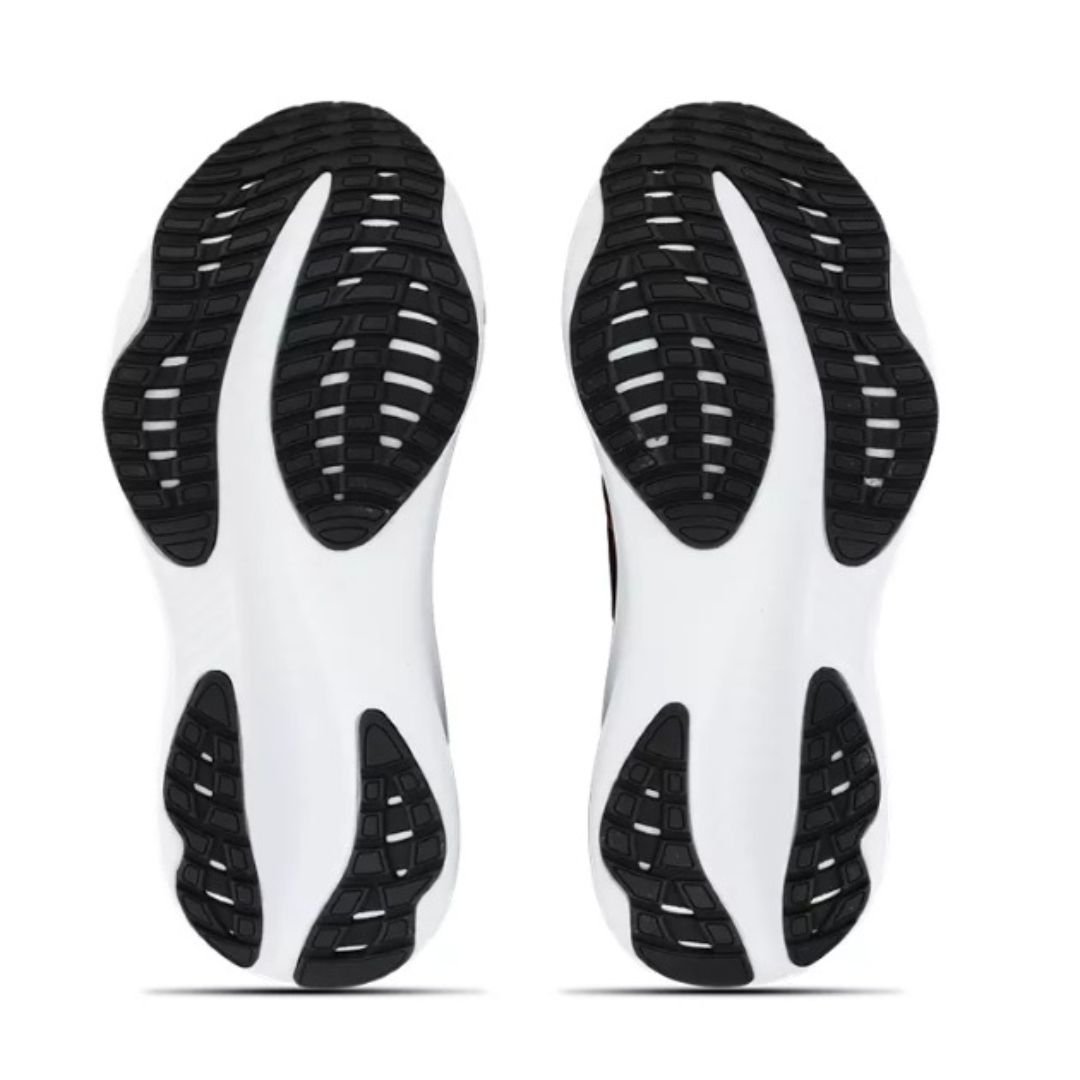 O solado em borracha sólida foi projetado para oferecer boa flexibilidade, passadas mais suaves e tração confiável em diferentes tipos de superfície, além de aumentar a durabilidade do tênis.