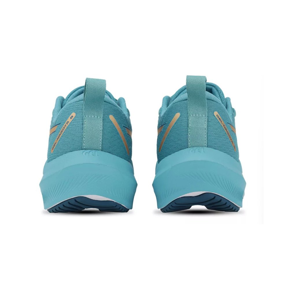 Com uma combinação moderna em azul/dourado, ele é ideal para corredoras que desejam amortecimento confiável e estabilidade tanto em treinos quanto em atividades do dia a dia.