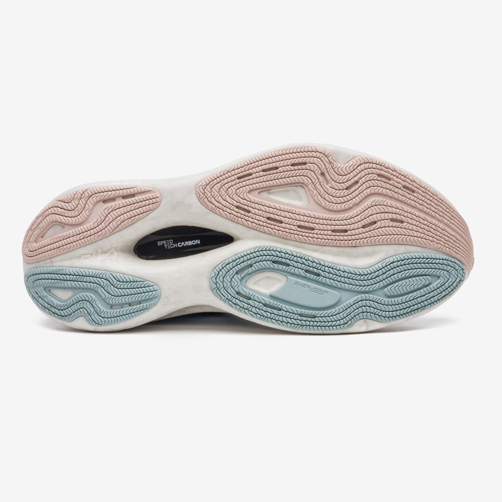 A evolução da entressola FLOAT garante absorção de impacto aprimorada e resposta dinâmica, enquanto a placa de carbono SPEEDTECH CARBON melhora a impulsão e eficiência da passada.